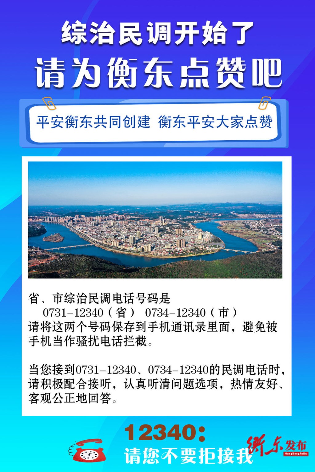 同是衡东人,共饮衡东水,永恋衡东情,您的一声“安全”,是对衡东的肯定,您的一声“知道”,是对衡东政法工作的鼎力支持,您的一声“非常满意”,是对我们最大的激励和鞭策!衷心祝愿您和您的家人、朋友身体健康,事事平安。