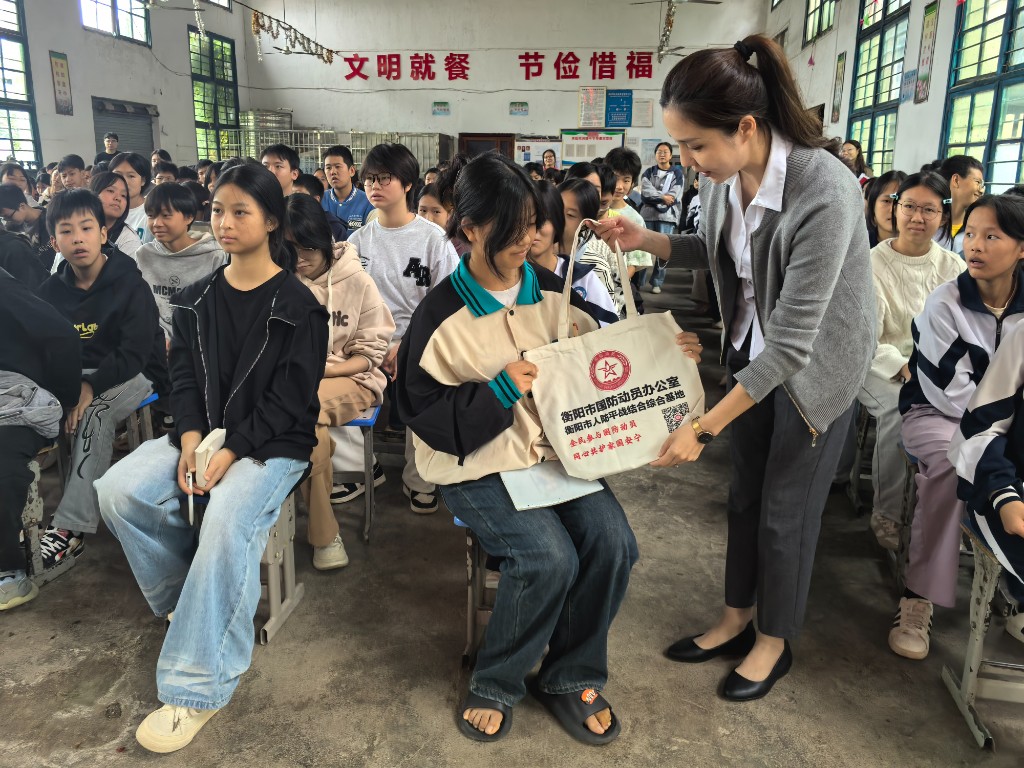 活动打破传统课堂界限,通过"科普讲座+互动体验"的形式激发学生兴趣。活动伊始,耒阳市人武部授课讲师以自身军旅生涯中的"三个转变"为主线,用通俗易懂的语言和生动形象的案例向同学们讲解我国国防科技的发展成就、防空防灾常识及国家安全形势,将复杂的军事知识转化为易懂的科普内容,将抽象的国防知识转化为鲜活的案例故事,让同学们听得入神、学得入心。