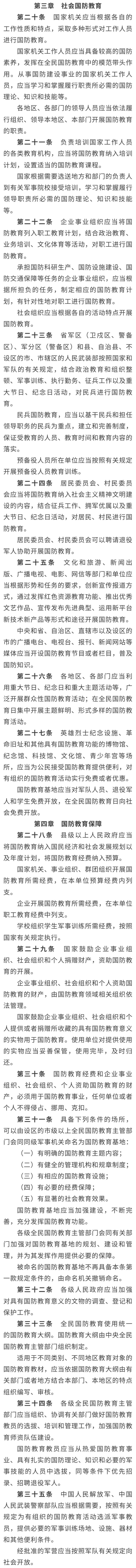 新修订的国防教育法主要亮点