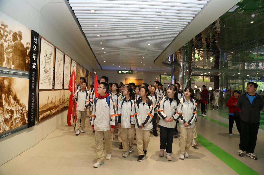 上午10点,师生列队来到基地,分班级依次在基地入口处合影留念,尔后在领队和解说员的引领下,对公园内"百部兵书道"、"百项防护知识区"、"百年空袭灾难警示墙"、"百将爱国诗林"和"百名衡阳军事人物风云录"等"五个一百"户外人防教育项目和防空防灾科普教育馆五大功能区进行参观学习。整个活动组织严密、顺利圆满、井然有序。