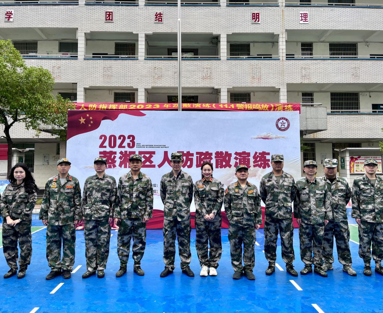 蒸湘区在蒸湘区蒸湘中学、雨母山镇幸福村举行了2023年人防疏散演练。随着警报声的响起,工作人员及各班教师通过简短动员组织学生分组,依次向操场疏散。整个演练过程所有人员行动及时、迅速、准确、规范。