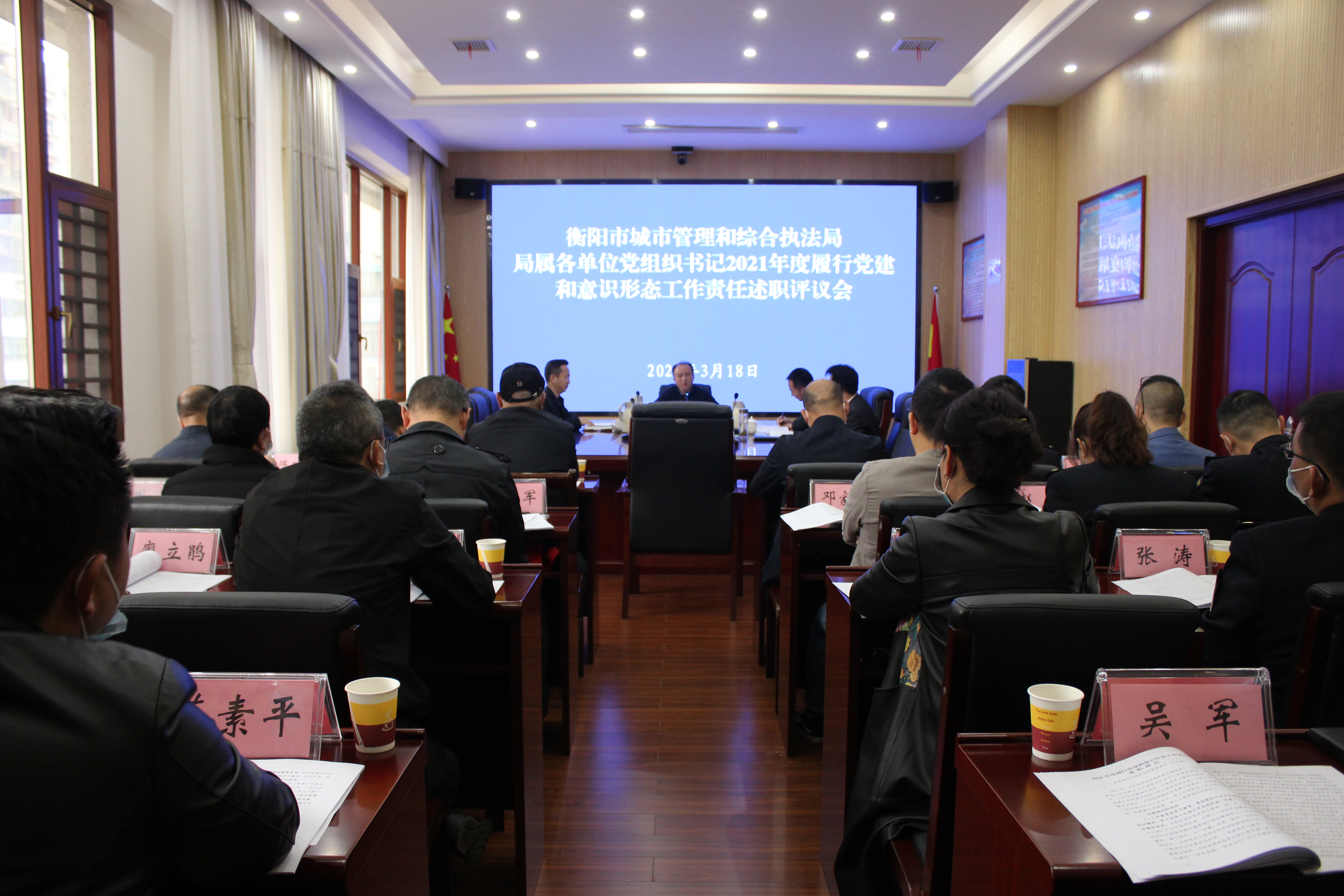 3月18日上午,衡阳市城市管理和综合执法局召开局属各单位党组织书记2021年度履行党建工作责任和意识形态工作责任述职评议会,局党组书记、局长徐志毅主持会议。