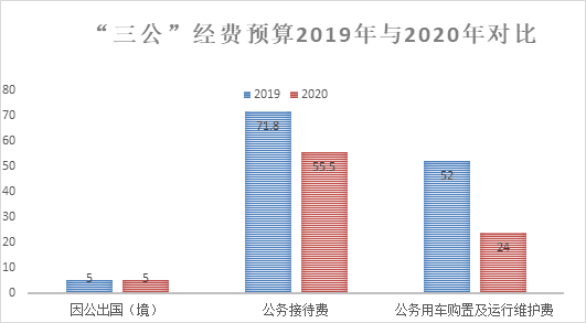 2019年"三公"经费预算128.8万元,其中:因公出国(境)费5万元、公务接待费71.8万元、公务用车购置及运行维护费52万元。会议费 22万元,培训费79 万元,分别比上年减少3.8万元/减少4.88万元,主要是因为厉行节约、压减开支。