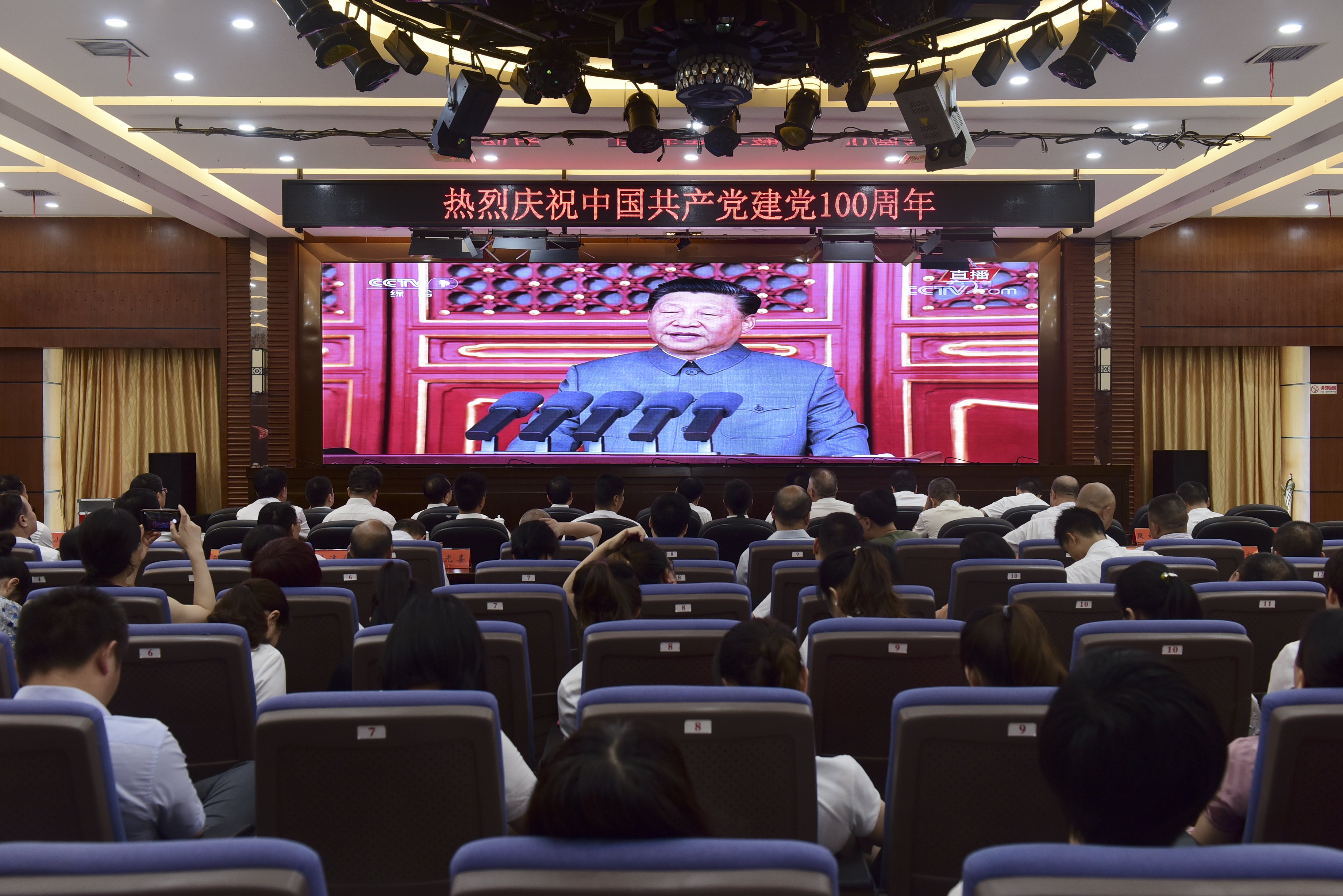 7月1日上午,庆祝中国共产党成立100周年大会在北京天安门广场隆重举行。衡阳市财政局全体干部职工在六楼多功能会议室集中收看了大会的实况,共同庆祝中国共产党百年华诞。