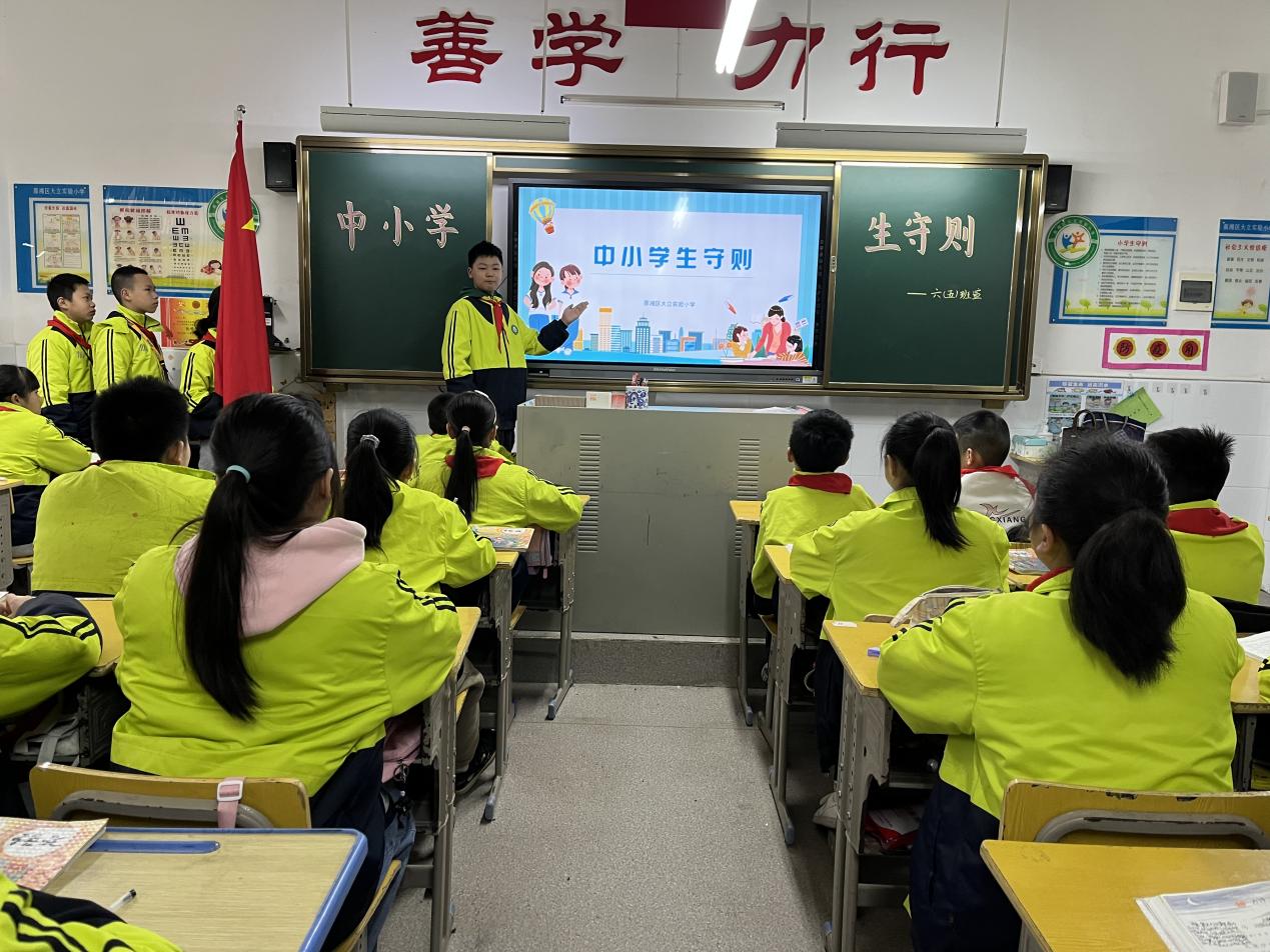 活动中,该校在每个班级的醒目位置粘贴新《守则》,营造学习新《守则》的浓郁氛围;大队部利用国旗下讲话对《中小学生守则》进行解读,校园红领巾广播进行宣传,提高全校师生的认识;各中队开展规范守则教育的主题班会,进一步点燃学生学习守则的热情,提高文明意识,增强遵守规范的自觉性;同时,少先队干部、文明监督岗也在日常巡查中加大对不文明、不规范行为的检查力度,让同学们在监督中形成自觉,把"守则"入脑、入心、入行动,内化于心,外化于行,争当学习和实践文明礼仪的小模范!