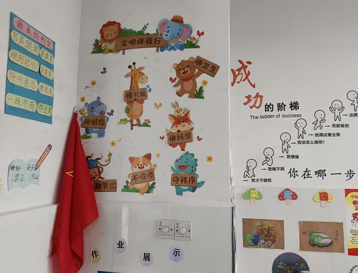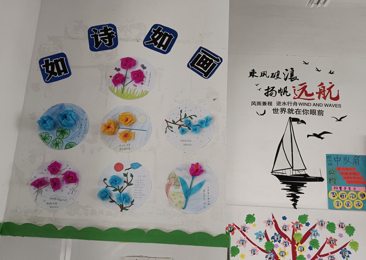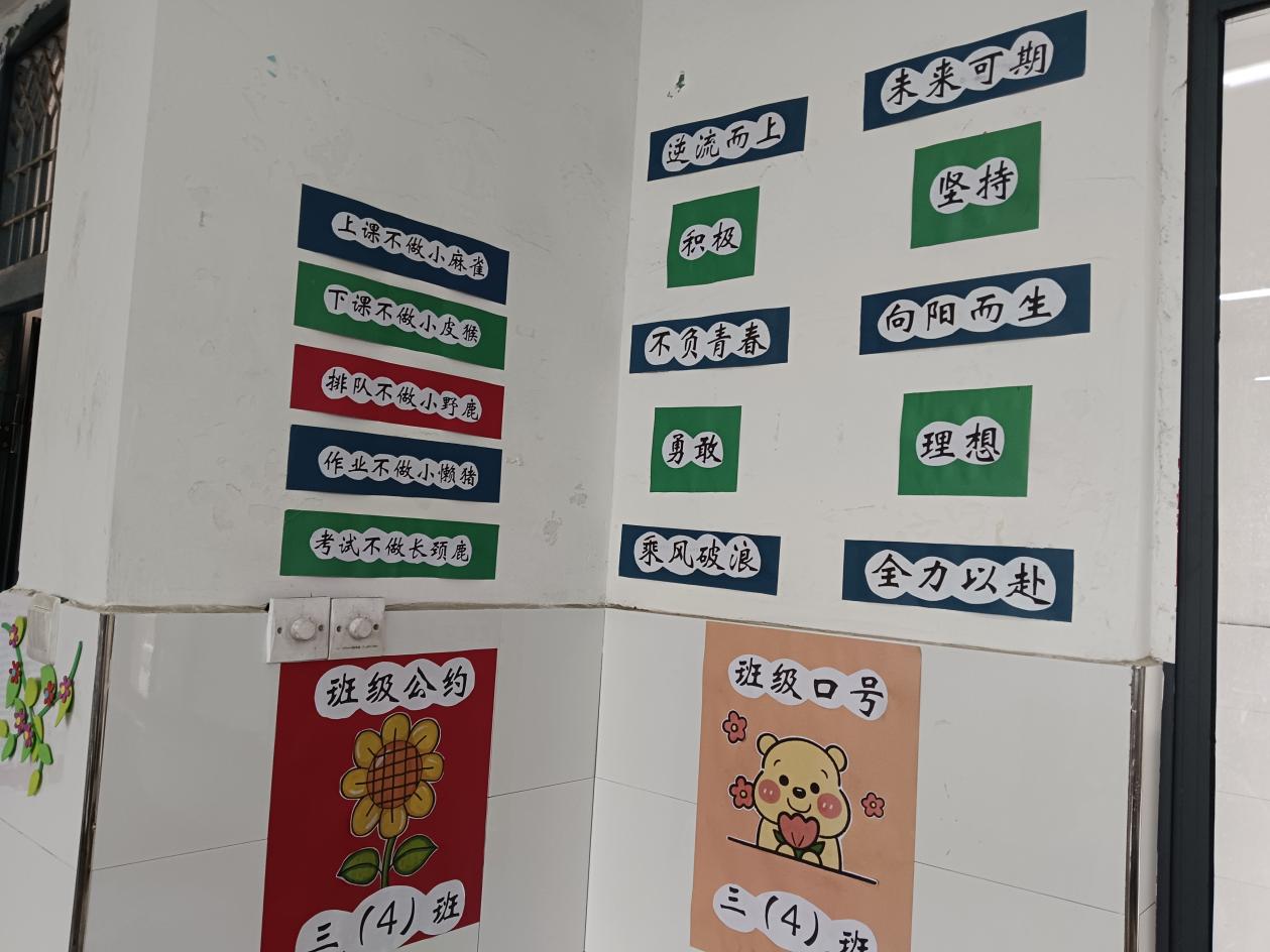 活动期间,各班师生群策群力,充分发挥创新能力,把一面面雪白的墙壁布置的五彩缤纷、生机勃勃。每间教室的讲台正上方五星红旗高高挂,学生们抬头可见的还有社会主义核心价值观,校训,中小学生守则,这些都是"标配"。接下来各班"八仙过海,各显神通":"清廉墙"荷花、竹林,栩栩如生显高洁;"图书角"书本摆放整齐,书香氛围浓郁;"荣誉墙"集体和个人奖状张贴,激励同学们不断进步;"作品展"展示的是学生的书法、绘画、手工等作品,素质教育成果初显;"植物角"青翠欲滴、绿意盎然,环保意识和生态意识在提升;"卫生角"工具摆放整齐有序,整洁干净;"名人墙"名家名言,学生们争相引用的座右铭……真正做到了一班一特色、一墙一主题、一角一亮点。评委们被这些新颖别致的班级文化吸引、驻足,连连赞叹。
