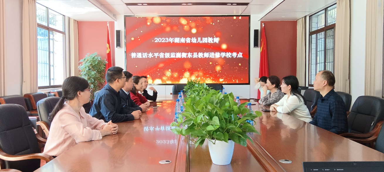 10月31日下午,衡东县2023年幼儿教师普通话水平省级监测工作在县教师进修学校举行,来自各乡镇民办幼儿园的20名45周岁以下幼儿专任教师参加此次抽测。省、市巡视员林峰、周碧华等一行驻点巡视督导。县教师进修学校党总支书记向建华、县教育局教师工作股股长黄卉等参与现场巡视。