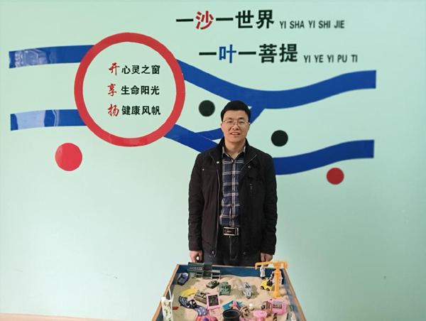 王宇在整理沙盘时说:"我于1995年登上讲台,在多年一线教学管理中,发现学生诸多不良习性与心理问题和家庭教育息息相关。2009年开始自学心理学,考取了国家二级心理咨询师(现已是心理学硕士),从此就抱定了'春蚕到死丝方尽,蜡炬成灰泪始干'的决心。"
