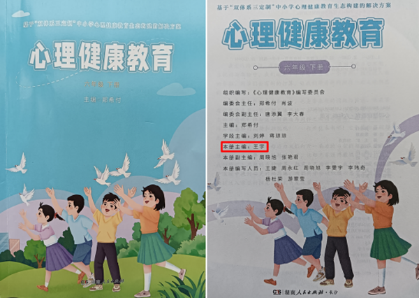 "感恩,幸福,期待!这次主编六年级《心理健康教育》教材,已由湖南人民出版社付梓,即将分发到师生手中,离我们的梦想又更进一步了。"王宇捧着刚到的教材,墨香、泪花、笑容,充融工作室。