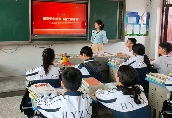 衡阳县蒸阳学校七年级学生周晓玲说:"通过全民国家安全教育日的学习,我知道了国家利益高于一切,国家安全,人人有责。我们要热爱祖国,自觉树立国家安全意识,维护国家安全,做一名积极向上的青少年。"