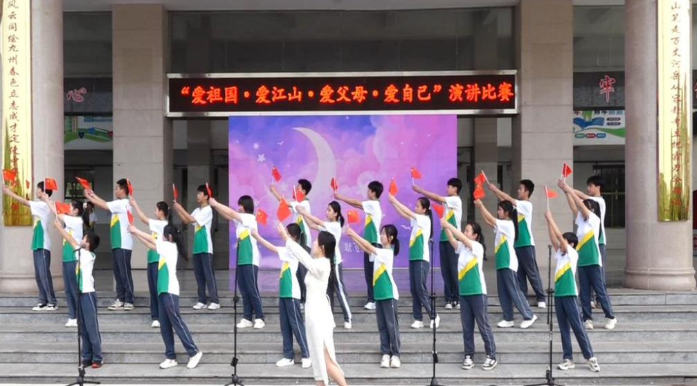 活动在师生齐唱的嘹亮国歌声中开场,常务副校长刘文杰致辞表示,希望通过大家的精彩演讲,展现出江山学校师生的风采和才华,激发大家对祖国、对学校、对父母、对自己的热爱之情。