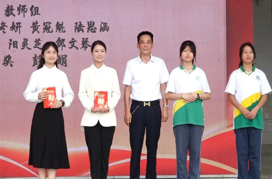 经过激烈的角逐,成绩当众揭晓,刘爱国等校级领导为获奖师生颁奖。