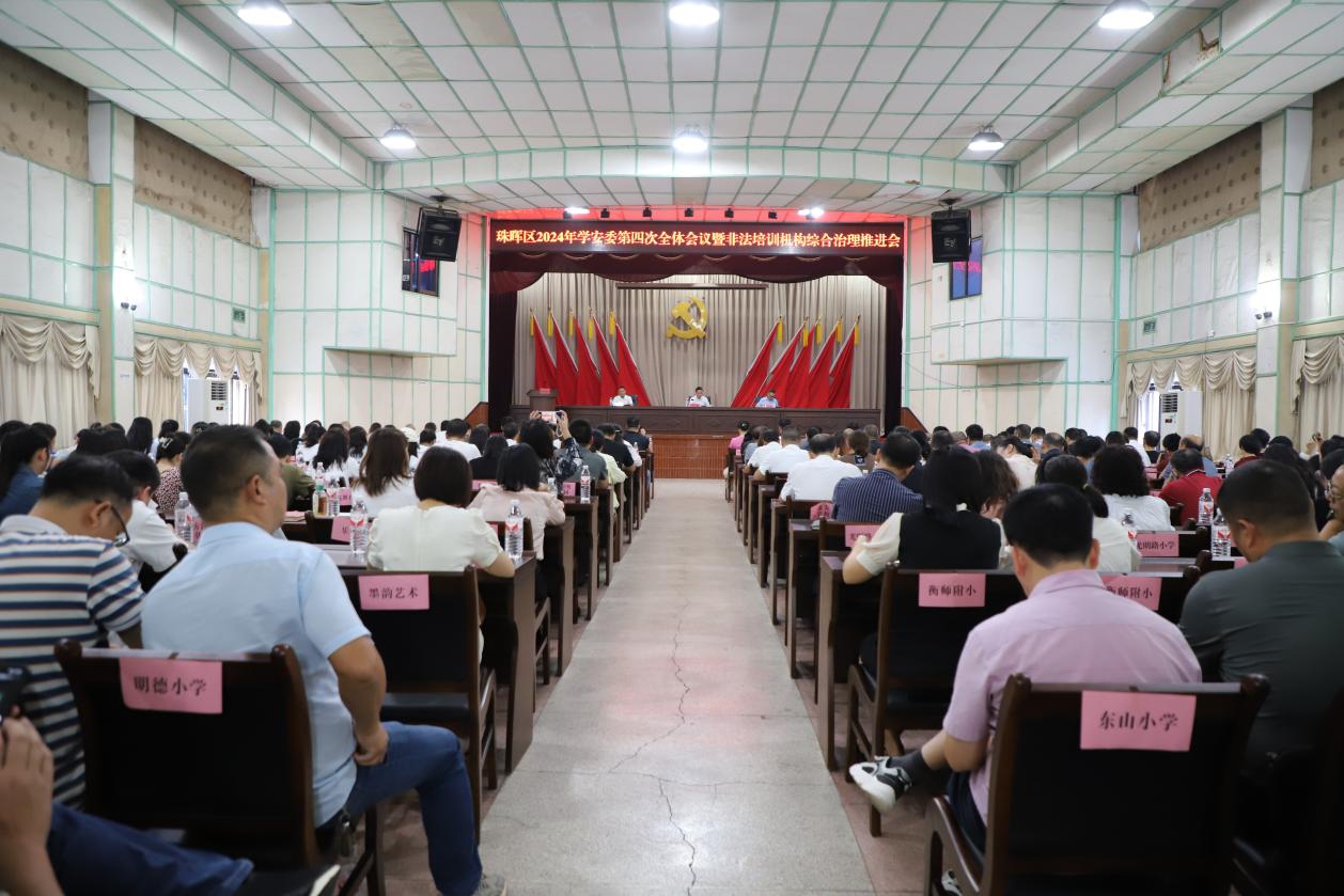 9月26日上午,珠晖区召开了2024年学安委第四次全体会议暨非法培训机构综合治理工作推进会。区学安委主任,区人民政府党组成员、副区长刘勇主持会议。区学安委副主任、区政府办副主任江友华,区学安委副主任、区教育局局长罗广慧出席会议。区学安委成员单位、各乡镇(街道)分管领导、区教育局班子成员及相关股室负责人、校外培训机构负责人共110余人参加会议。