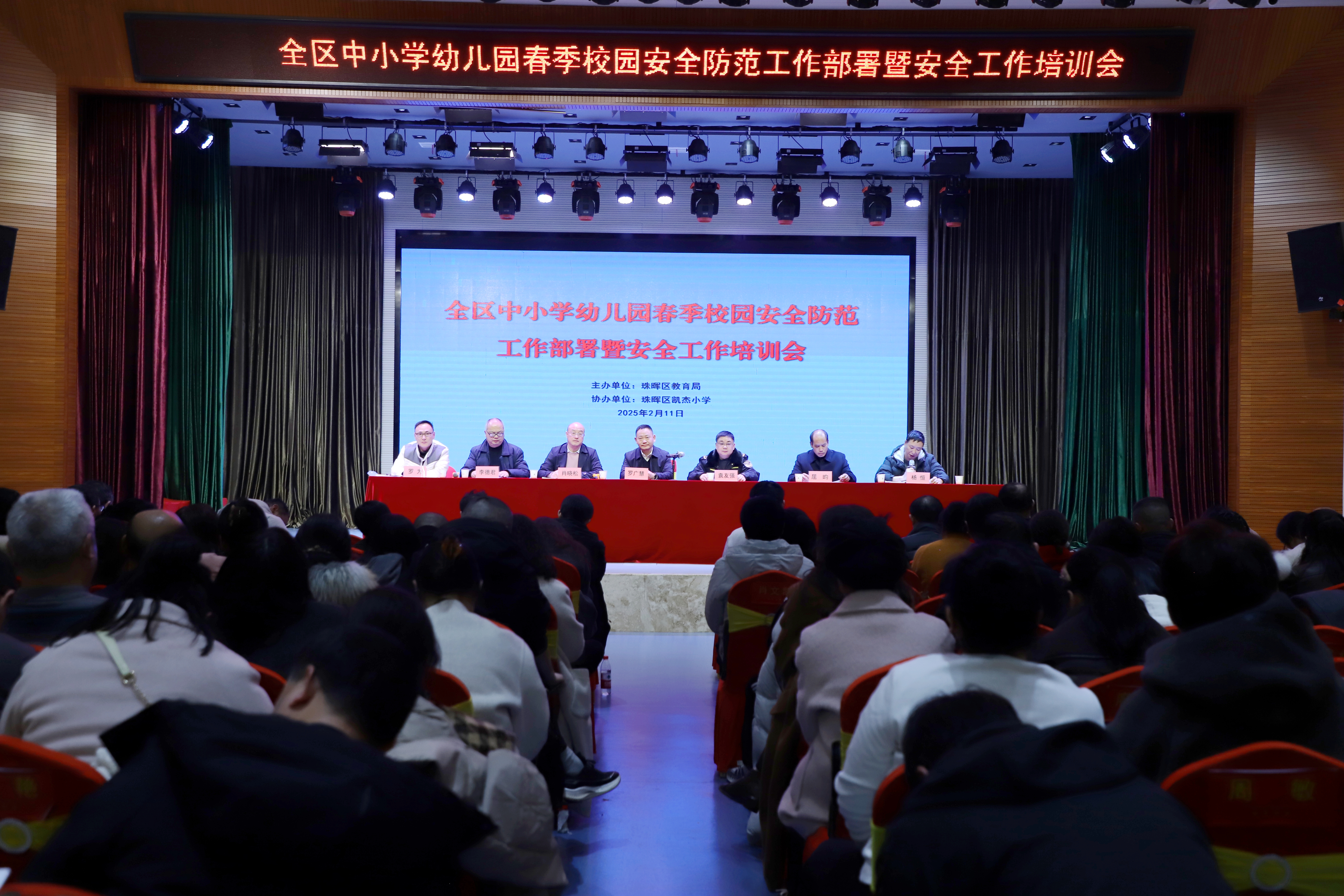 为保障新学期师生安全,全面提升校园安全管理水平,织密校园安全防护网。2月11日,珠晖区教育局召开全区中小学幼儿园春季校园安全防范工作部署暨安全工作培训会。区教育局党组书记、局长罗广慧,珠晖公安分局副局长邹爱云、区教育局党组成员、总督学肖晓松等领导出席会议。
