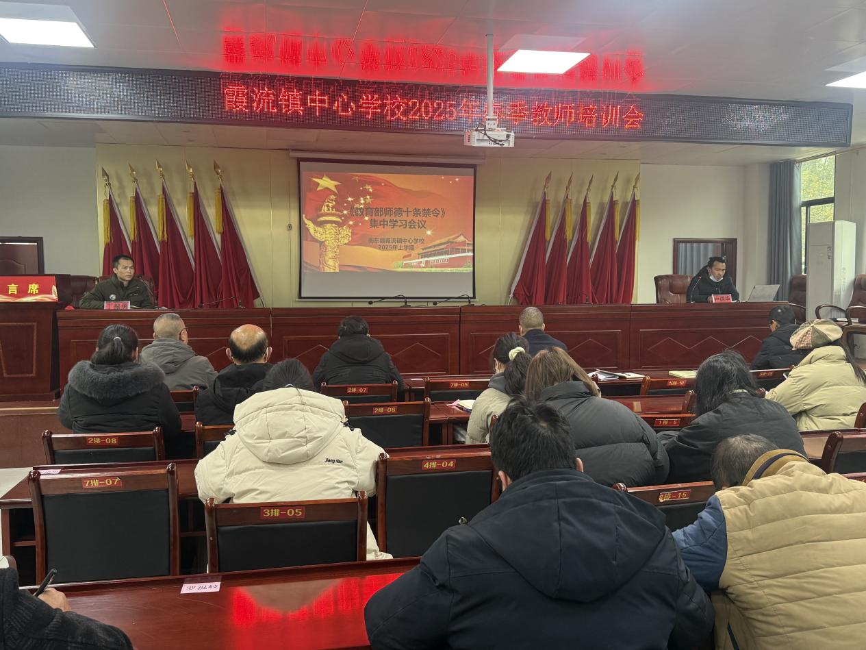 为进一步加强教师队伍建设,提升教师师德素养和教学能力,2025年2月14日衡东县霞流镇中心学校春季教师培训会议在镇政府便民服务中心二楼会议室隆重举行。本次培训聚焦师德师风学习以及《新课标背景下的教学设计与实践》两大核心内容,为教师们带来了一场知识与理论的盛宴。