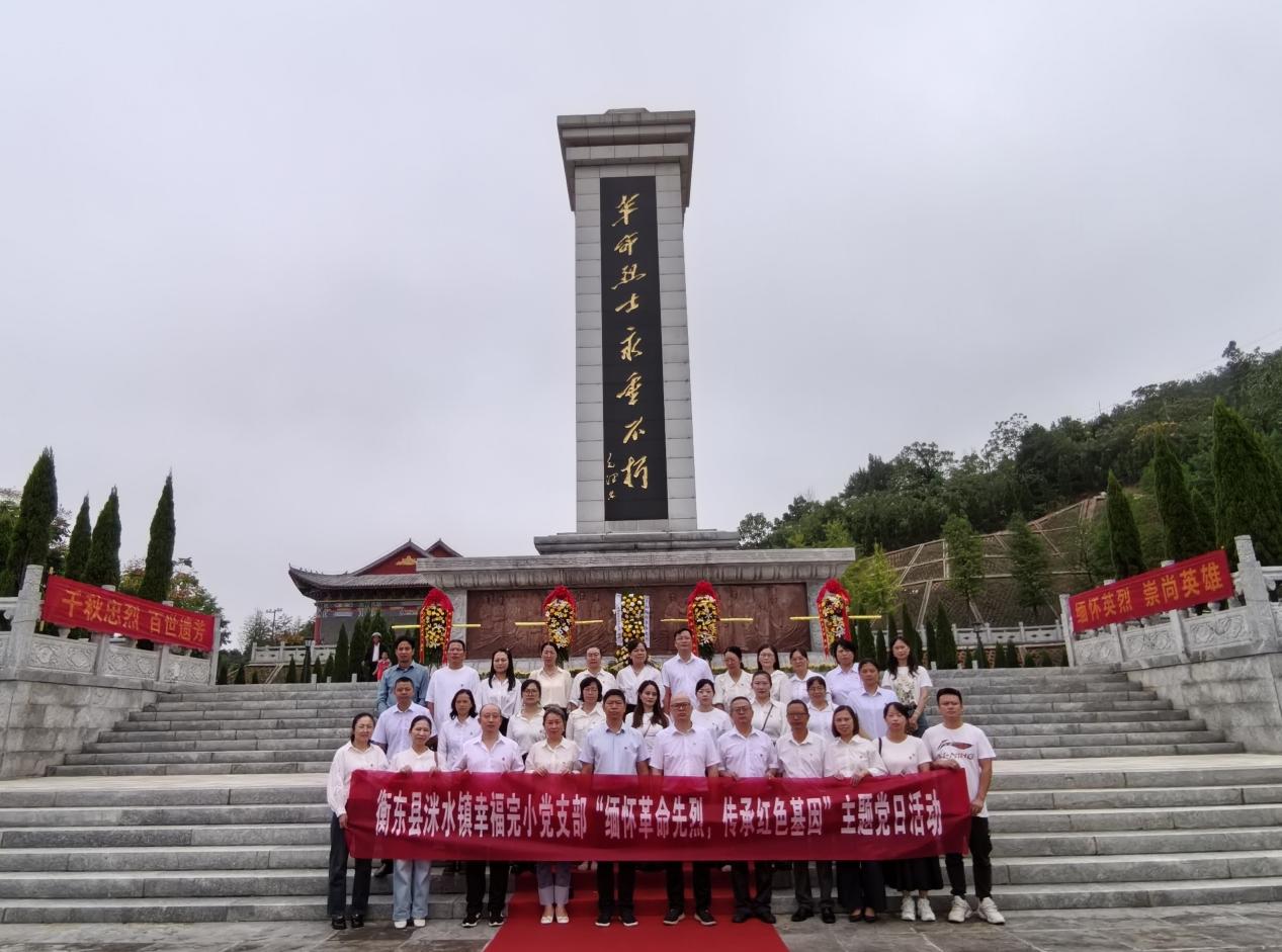 为深刻缅怀革命先烈,传承红色基因,切实强化党员教师"为党育人、为国育才"的使命担当,9月30日上午,衡东县洣水镇幸福完小党支部组织全体党员赴衡东烈士陵园,开展"缅怀革命先烈,传承红色基因"主题党日活动。
