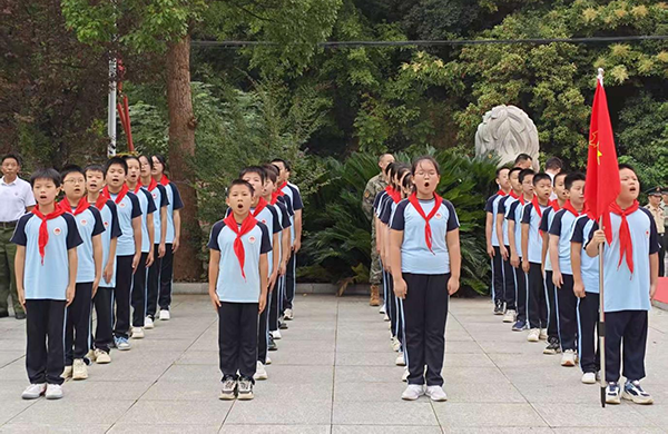 默哀结束后,队员们献唱《我们是共产主义接班人》。"我们是共产主义接班人,继承革命先辈的光荣传统......"激昂的旋律回荡在陵园上空,坚定的歌声展现出新时代少先队员的蓬勃朝气,更传递出"接过先烈接力棒、接续奋斗向未来"的决心。