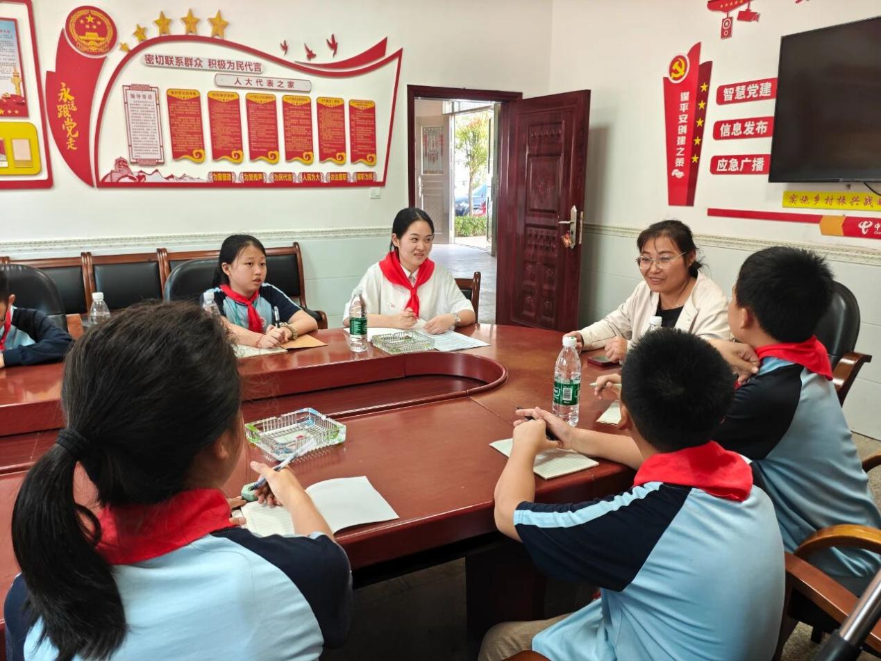 活动最后一站,队员们走进村民服务中心。村干部先是带领大家参观了文化长廊、图书室与村民办事处,让孩子们直观感受乡村的公共服务设施;随后详细介绍了明翰村"红色引领、产业支撑、生态宜居"的发展思路,从红色资源保护到特色产业布局,从人居环境整治到村民生活变化,娓娓道来;面对队员们提出的"乡村振兴要做哪些事""我们能为家乡做什么"等问题,也耐心逐一解答。