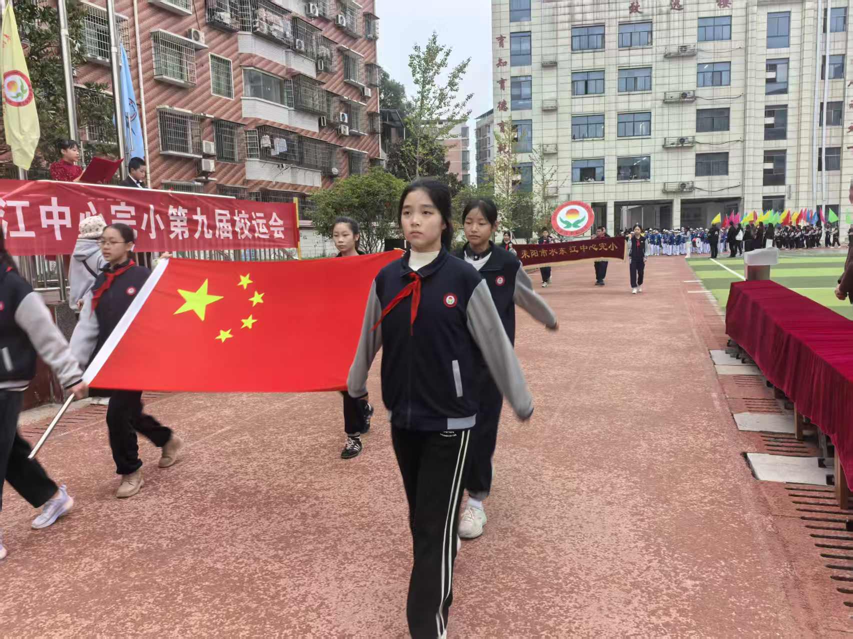秋日的天空蒙着一层薄灰,冷风裹着湿意掠过操场,却丝毫挡不住东江完小师生的热情——耒阳市水东江中心完小第九届田径运动会在10月22日这天如期启幕,为阴冷的日子添了满场活力。