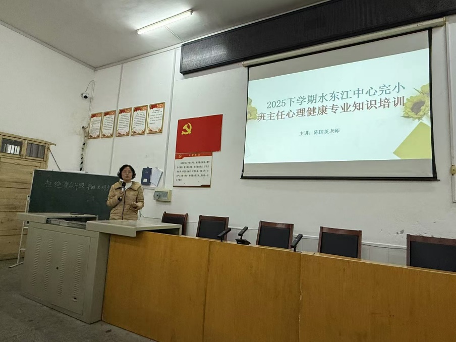 为切实提升班主任心理健康教育专业素养,筑牢校园心理健康防护网,助力学生健康快乐成长,10月11日上午,耒阳市水东江中心完小精心组织的班主任心理健康专业知识培训顺利开展。本次培训由该校陈国英老师主讲。
