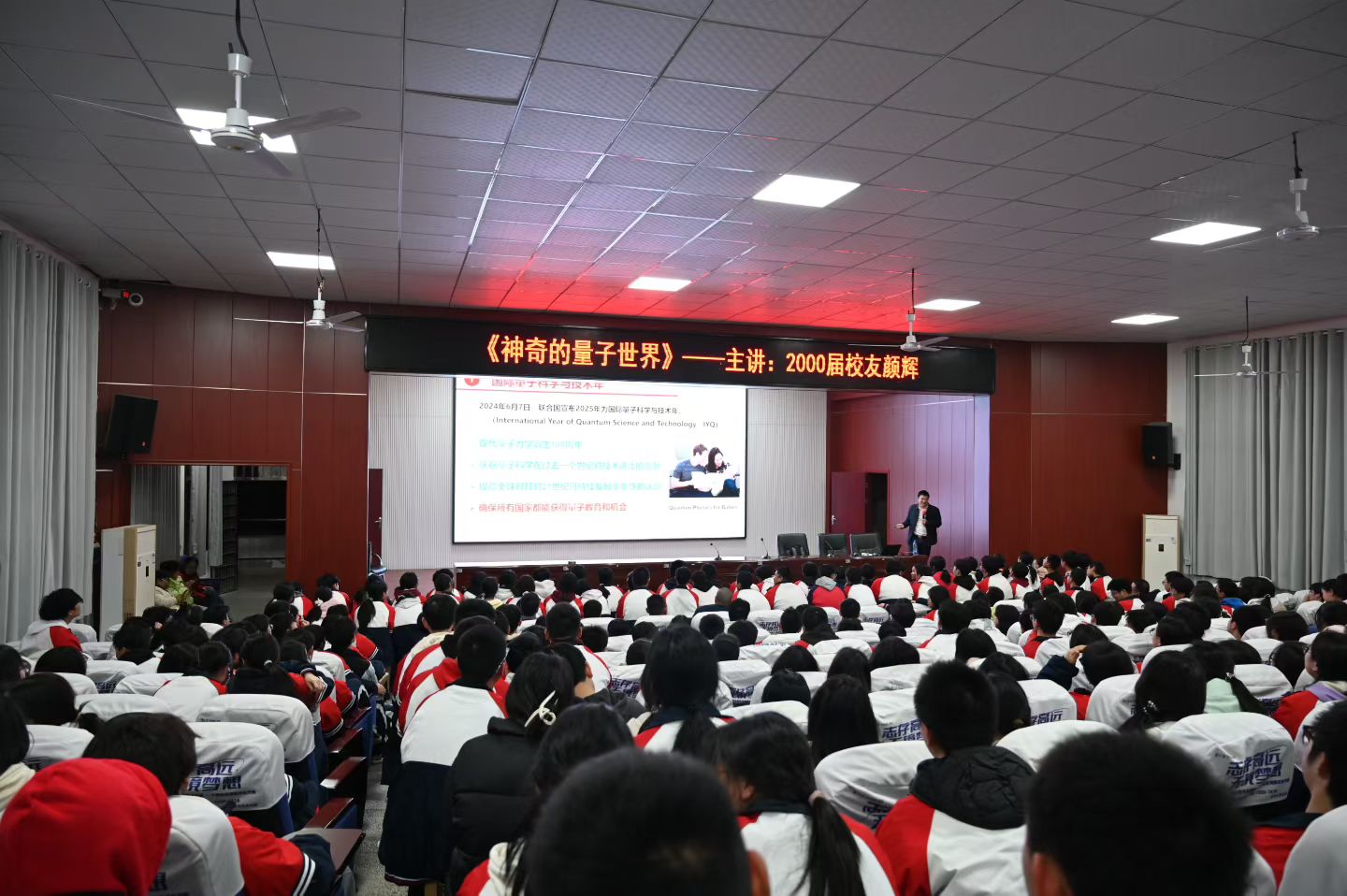 颜辉教授是衡东山区走出的科学家,在欧中求学期间勤奋苦读,后考入武汉大学,完成硕博连读并赴港深造。如今他身为国家杰出青年基金获得者,带领团队斩获多项科研大奖。讲座中,他以"台阶与马路"类比能量量子化,用趣味案例解读"量子隧穿"等概念,结合2025年诺贝尔物理学奖,让抽象量子知识变得通俗易懂。