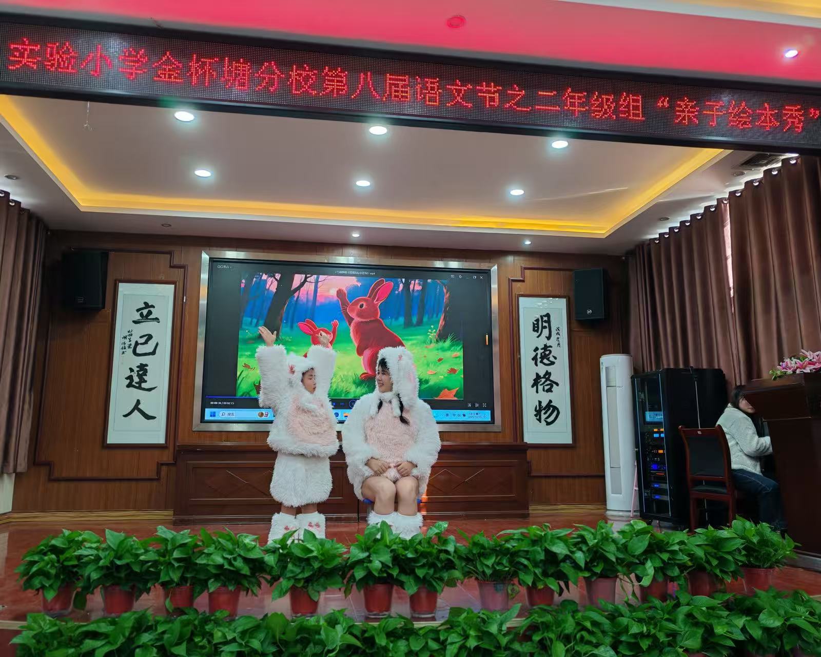 一年级"萌娃趣享语文嘉年华"把拼音、汉字、书写、朗读、表达等语文知识融入趣味闯关,让孩子们在游戏中内化知识,在体验中培养能力。二年级"亲子绘本秀",孩子们携手家长将平面绘本搬上立体舞台,用充满创意的演绎,让文字在亲情互动中流淌,让故事在声光交织中绽放。三年级"成语英雄会",孩子们擂响智慧战鼓,比拼成语储备,展现思维风采,完成了一场别开生面的传统文化之旅。四年级"阅读思维导图大赛"引导学生以图释文,在梳理与创作中实现深度阅读。五年级"课本剧表演赛"将课本文字转化为有温度、有张力的舞台叙事,让课文在演绎中焕发新生。六年级"我与书的故事"征文活动则让学生以笔抒怀,用文字回顾阅读时光、寄托成长感悟。