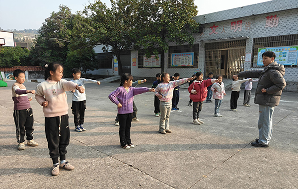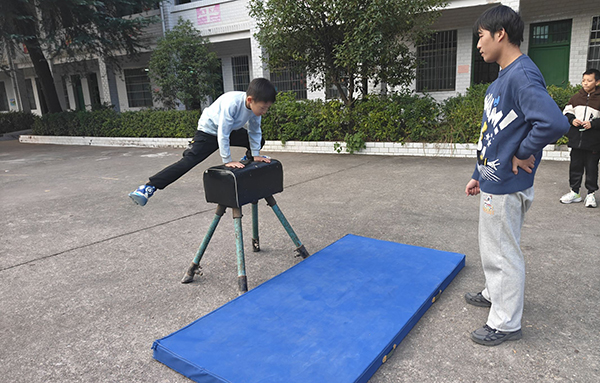 "项目每周轮换,确保学生全面参与、持续保持新鲜感。活动设计注重梯度化,低年级以跳房子、简易竹竿舞为主,中高年级逐步加入武术套路、团队拔河等,契合学生身心发展规律。"体育教师袁梦介绍。