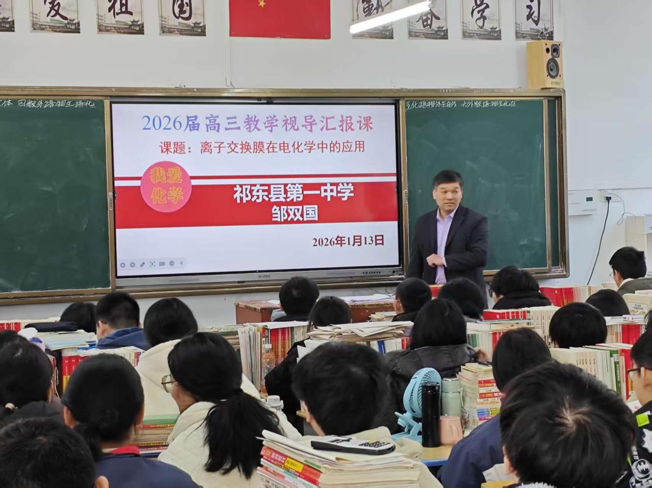 近日,一场聚焦核心考点的视导汇报课在祁东县一中精彩上演。祁东县化学名师工作室骨干成员邹双国老师以"离子交换膜在电化学中的应用"为主题,凭借扎实的专业功底、创新的教学设计与饱满的教学热情,为师生们呈现了一堂兼具深度、温度与实效的高三复习示范课。