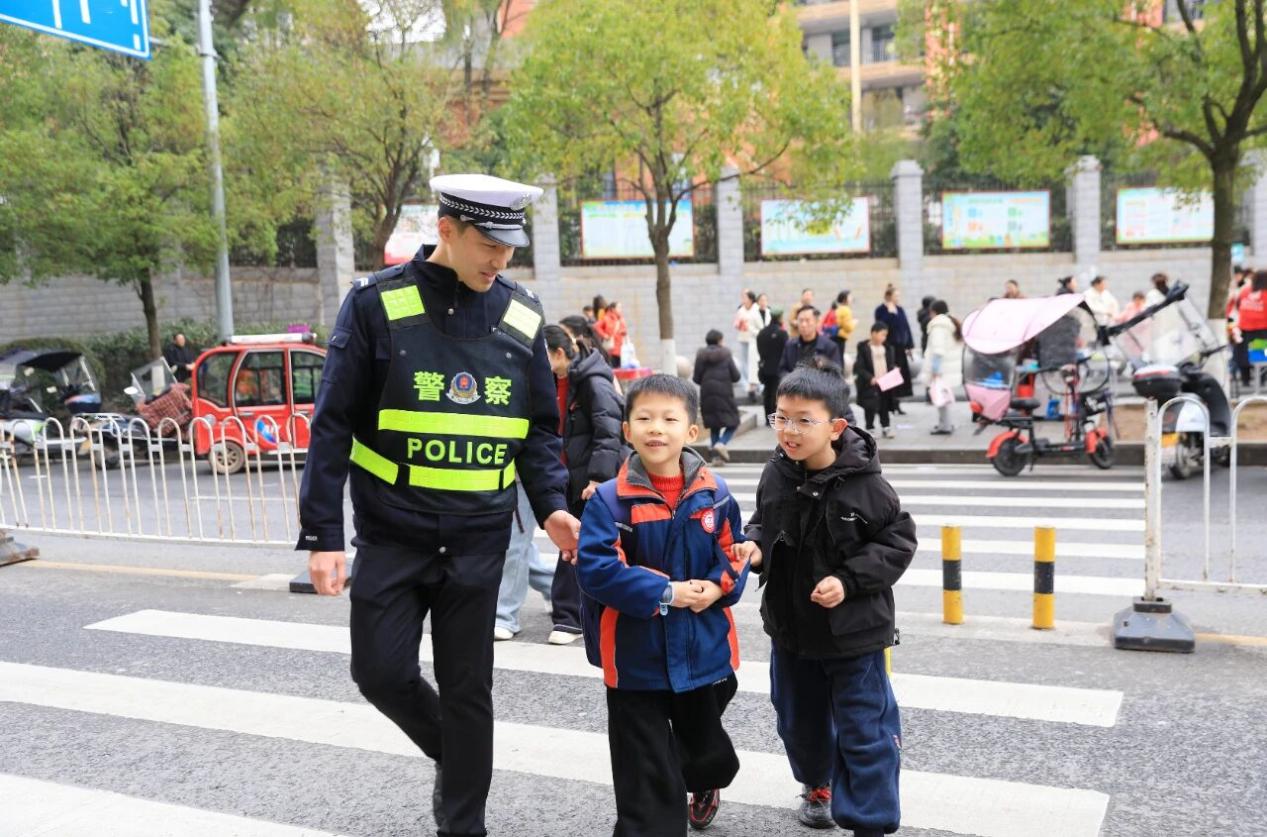 "看到警察帮扶学生过马路,很暖心。我们家长切身感受到了安全就在身边,向这一抹抹'藏蓝'和'荧光绿'身影致敬!"实验学校一位家长用手机拍下了一幕幕感人的画面。