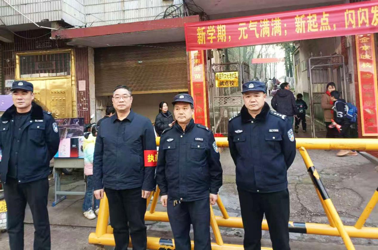 3月4日开学第一天,在实验学校,公安民警提前"报到"、执勤护学。在校门口及重点路段设置护学岗,采取定点执勤与流动巡逻相结合的方式,提高见警率和执行力,加强交通疏导、秩序维护和治安巡逻,全面构筑交通安全防护网。