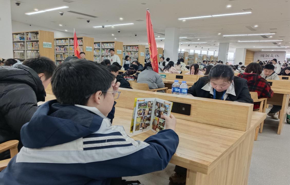 抵达耒阳市图书馆后,同学们有序进入馆内,在宽敞明亮的阅览区里,或驻足书架前挑选心仪读物,或伏案静心阅读,或轻声交流感悟。漫画、文学、科普等各类书籍让大家沉浸在知识的海洋里,指尖翻动书页的沙沙声与春日的鸟鸣交织成一曲动人的书香乐章。