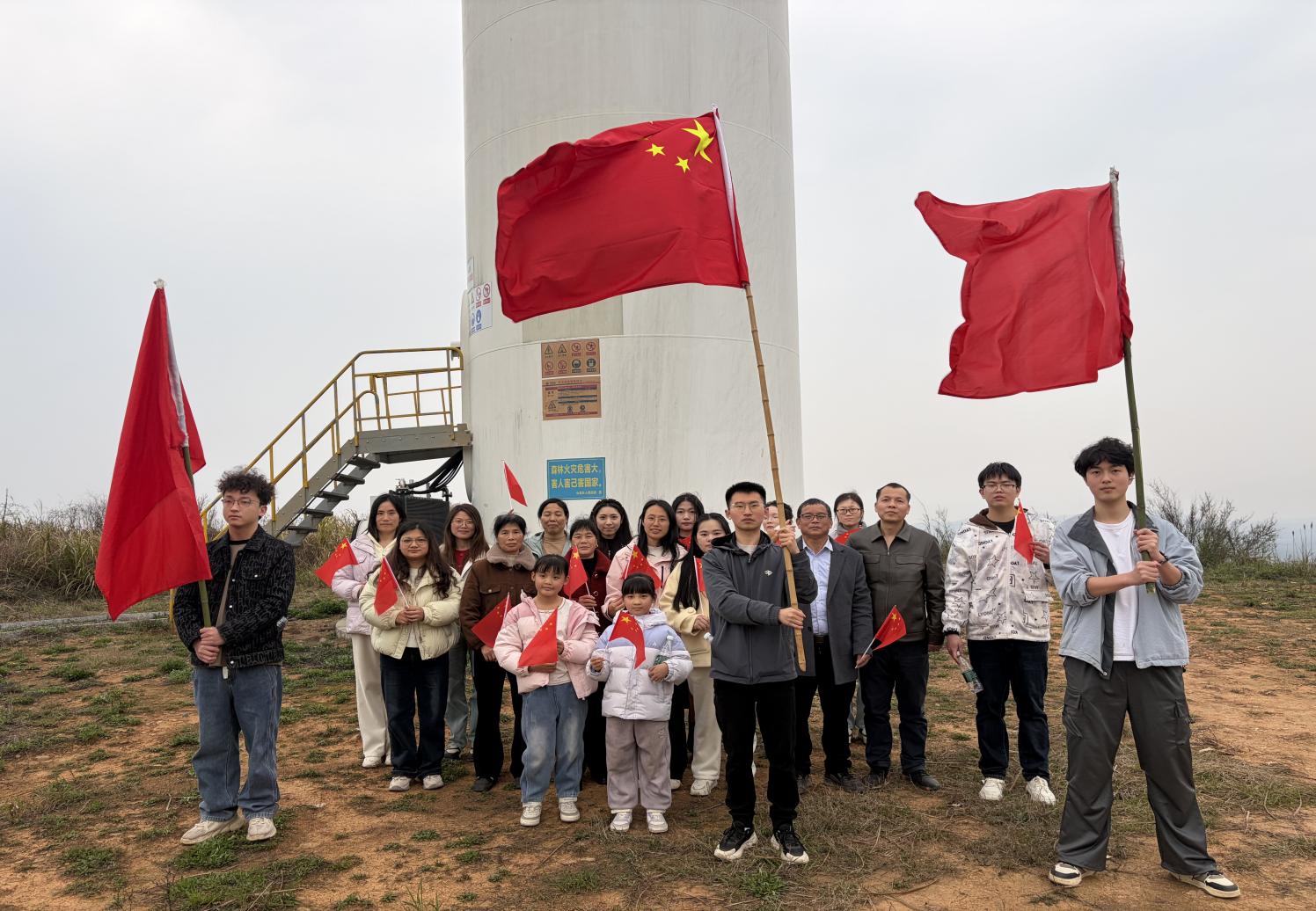放学后,教师们精神抖擞地齐聚巨麓峰脚下,迈着轻快的步伐开始登山。一路上大家畅谈交流,欢声笑语不断。登顶后,一座座高耸入云的"大风车"映入眼帘,巍然屹立于山脊之上,随风缓缓转动,与蓝天白云交相辉映,构成壮丽画卷。教师们纷纷合影留念,记录这难忘时刻。