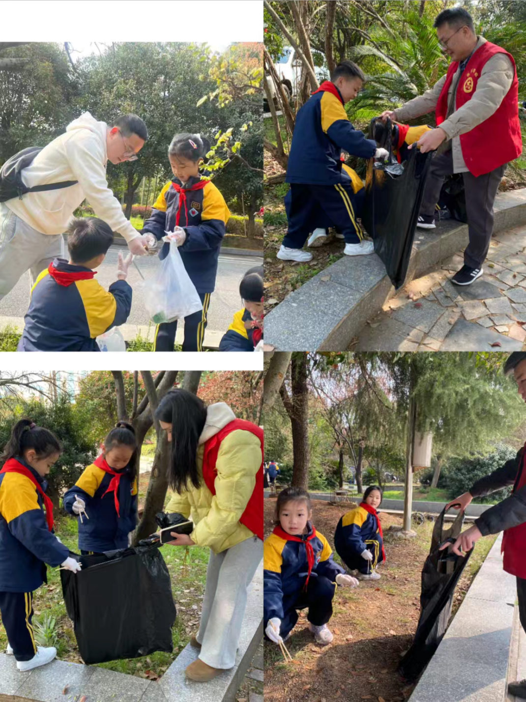 誓言在心,行动为证。同学们化身"环保小卫士",弯腰捡拾广场上的纸屑、烟头。家长志愿者全程陪伴,有的俯身指导,有的举起手机记录孩子认真的模样。阳光下,一个个小小的身影忙碌穿梭,成为广场最温暖的风景。"今天孩子主动捡垃圾,还说以后要多帮助别人,我觉得这样的活动特别有意义。"二年级8班黄星如妈妈感慨道。