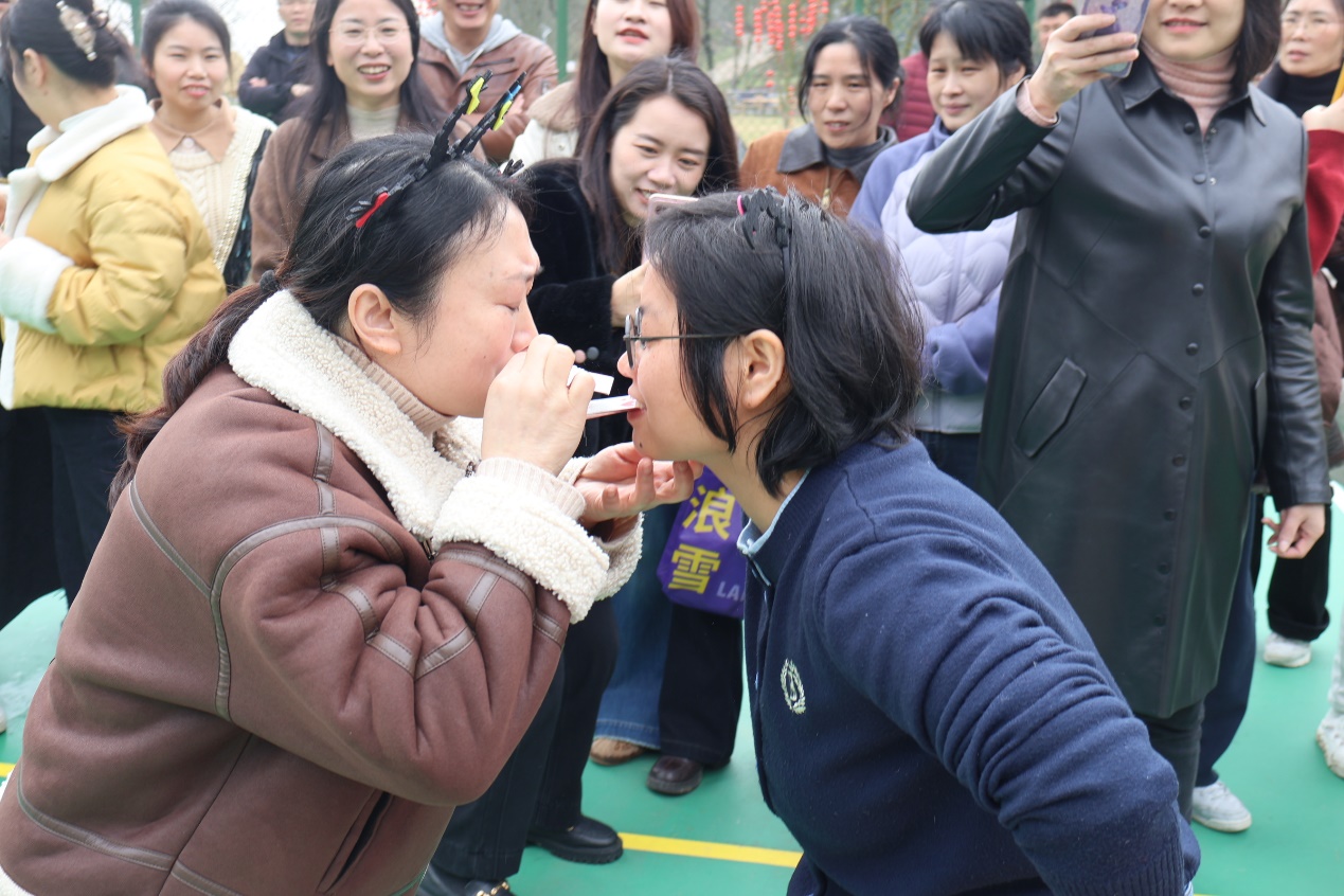 "平时工作忙,难得有这样的机会和大家一起放松。这些游戏虽然简单,但特别考验配合,大家的心更近了!"该校教师贺群艳笑着说道。