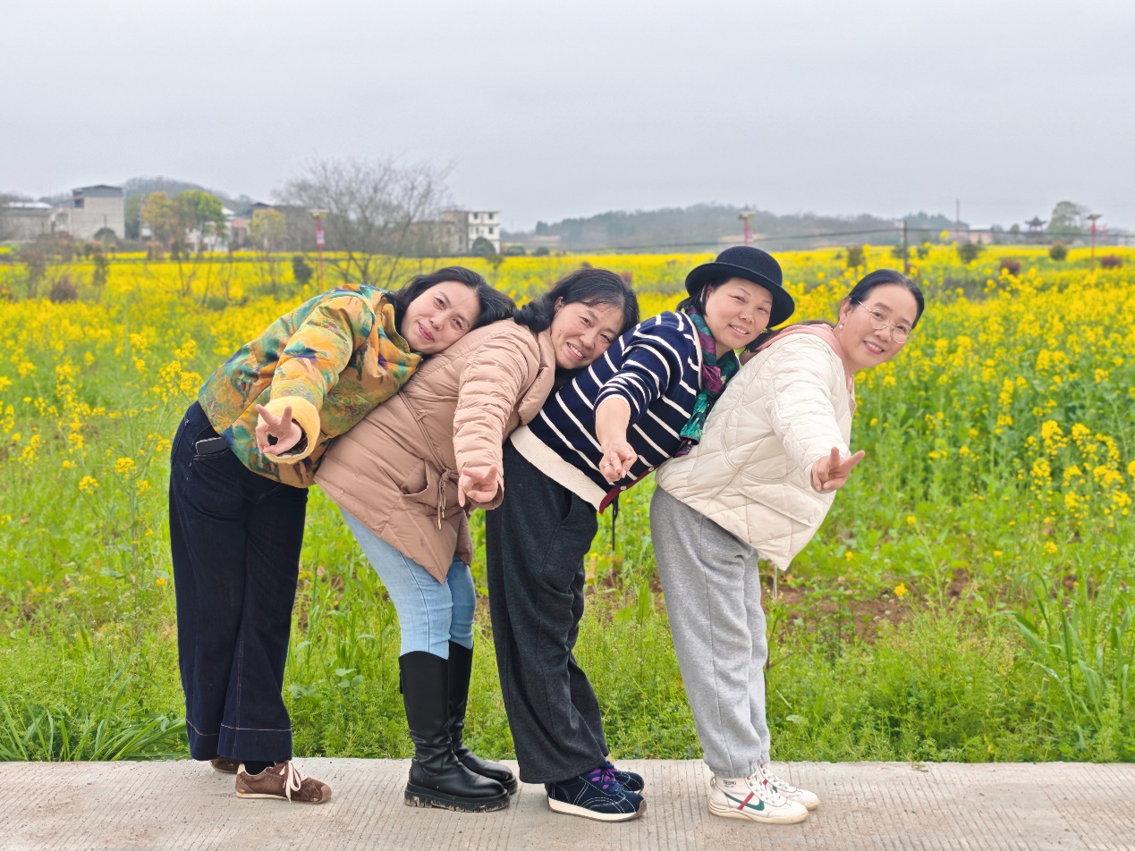 团建之余,老师们还深度体验了乡村特色活动。大家走进田间地头采摘青草,感受泥土芬芳;围坐在一起学习抖糍粑,在传统手艺中品味乡愁。金黄的油菜花海间,老师们三五成群,或驻足赏景,或拍照留念,春日的画卷在欢声笑语中徐徐展开。