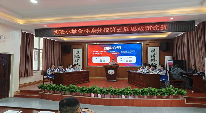 3月26日,耒阳市实验小学金杯塘分校第五届"校园思享会"思政辩论赛火热开赛。六年级学子围绕"小学生担任班干部利大于弊VS弊大于利"的辩题,展开了一场兼具思想深度与语言魅力的精彩对决。
