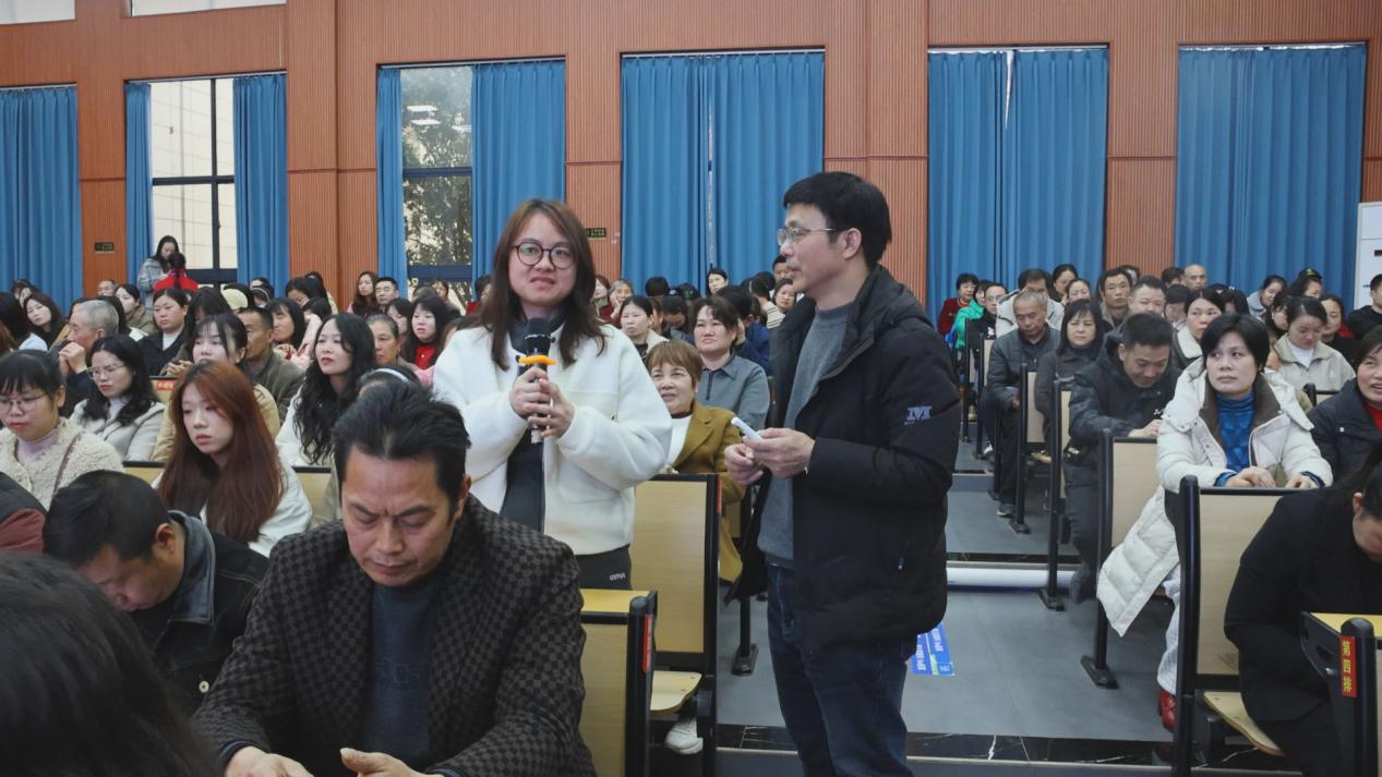 活动中,县教研室心理健康教研员、家庭教育指导师王宇,以《青春期,父母怎么"让"出好孩子》为主题,结合青春期学生身心发展特点,细致讲解理解孩子、有效陪伴的关键方法。通过鲜活案例、通俗讲解,引导家长转变教育观念,学会理性沟通、正向引导,共同营造和谐亲子关系。互动环节里,家长们围绕亲子沟通、叛逆期引导等问题踊跃提问,老师现场精准答疑、实用支招,有效缓解家长育儿焦虑。