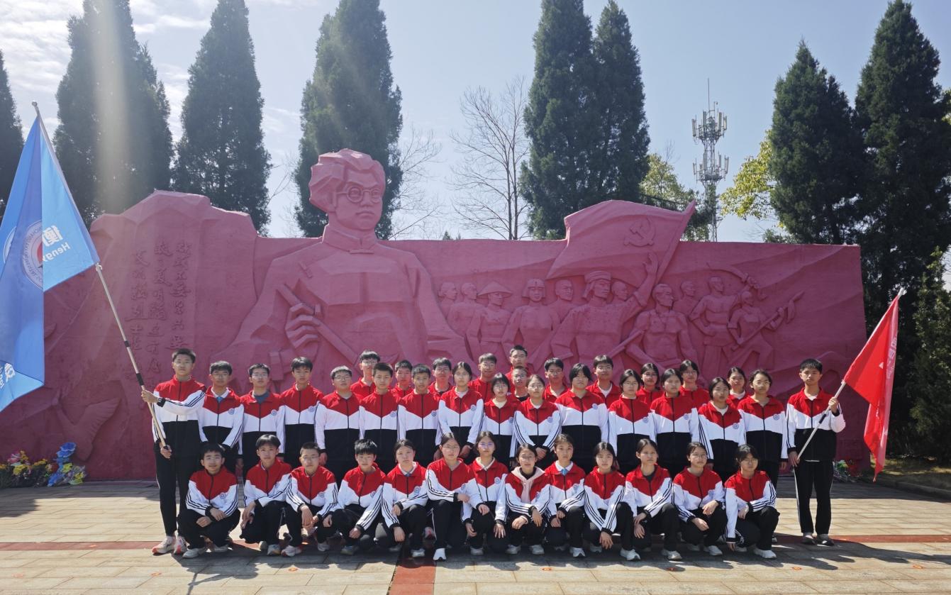 抵达夏明翰烈士纪念广场,全体师生列队肃立,向夏明翰烈士敬献花篮、鞠躬默哀,集体朗诵《就义诗》,感悟其坚贞不屈的革命气节。党员重温入党誓词,团员重温入团誓词。师生们凝神瞻仰红墙,追忆艰难困苦的抗战岁月,寄托对革命先烈的崇敬与哀思。