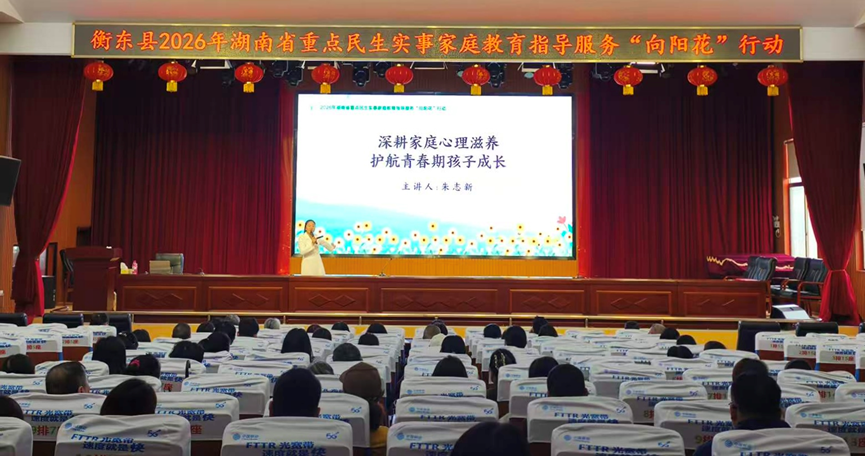 为贯彻落实2026年湖南省重点民生实事项目,4月15日上午,衡东县教师进修学校开展"向阳花"心理健康和家庭教育指导服务活动,家长们走进校园,聆听了一场"科学育儿"专题讲座。