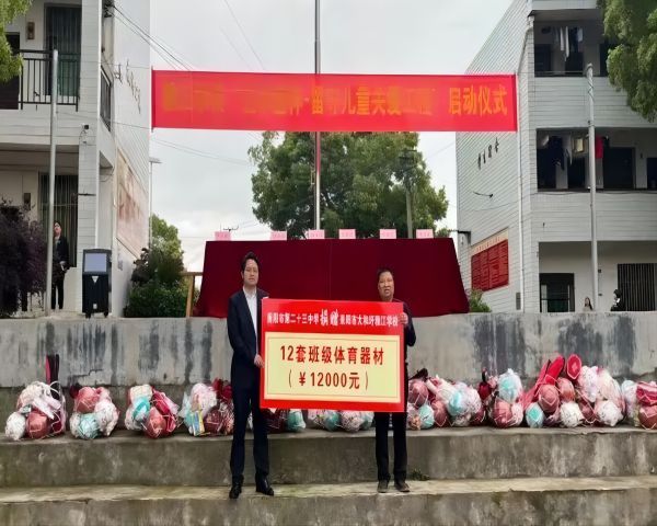 在启动仪式上,衡阳市二十三中廖荣辉校长向雅江学校全体师生表示亲切的问候,并就学校办学历程、办学特色等方面做了简要介绍,同时对孩子们提出三点希望:一要热爱国家;二要好好学习;三要心地善良。随后,衡阳市二十三中向大和圩雅江学校捐赠了12套班级体育器材,以助力留守儿童放飞艺术梦想。