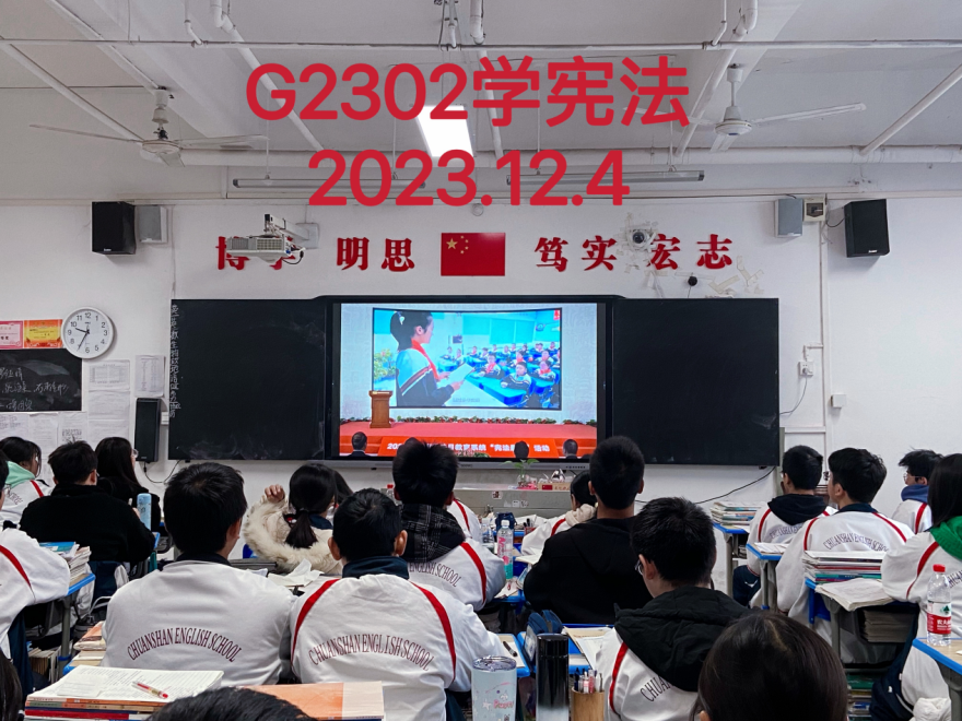 党总支书记欧立平强调:全体师生要敬畏法律,深入学习,把学习宪法同学习贯彻党的二十大精神相结合,同清廉学校建设相结合,同尊法、学法、守法、用法相结合,进一步营造风清气正的校园环境,培育蓬勃向上的发展生态。衡阳市第二十中(船山英文学校)历来高度重视培养学生的法治观念,近年来学校通过举行"三会一课"、主题班会、主题社团等活动有效增强了师生的法治观念,营造了尊崇宪法、风清气正的校园氛围。学习宪法已成为船英学子的必修课。