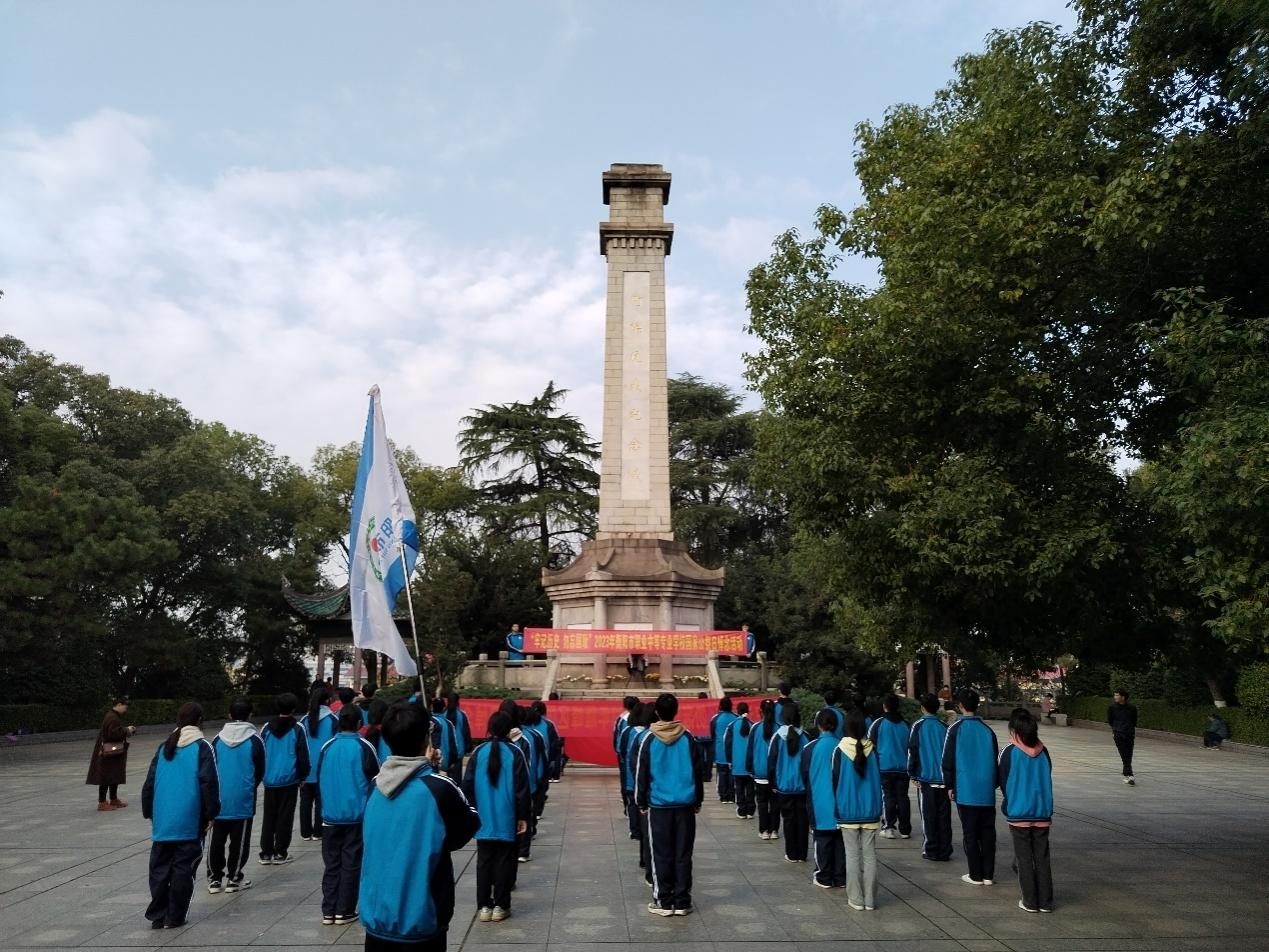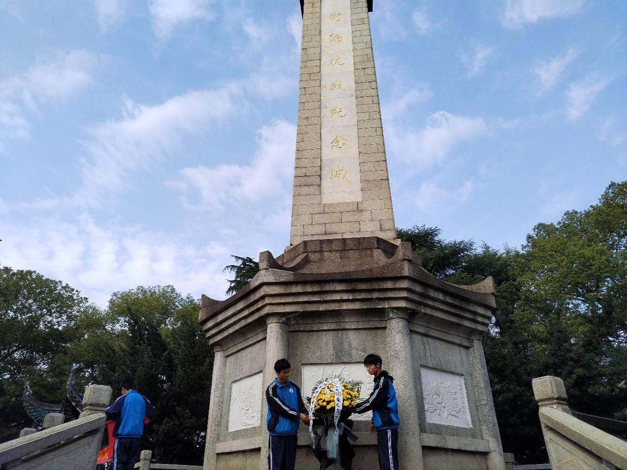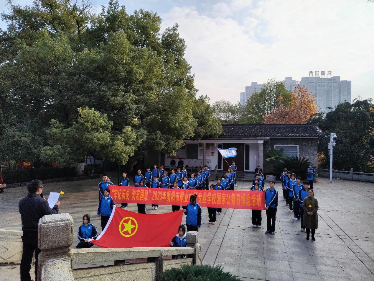 今天是第十个南京大屠杀死难者国家公祭日,衡阳市职业中等专业学校的部分师生,在学校党委委员唐连三和团委书记李秋玉、学生科副科长胡婉容的组织带领下,来到岳屏公园抗战纪念碑前,沉痛悼念遇难同胞。