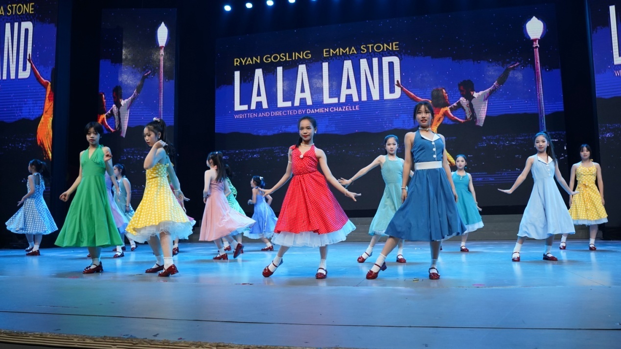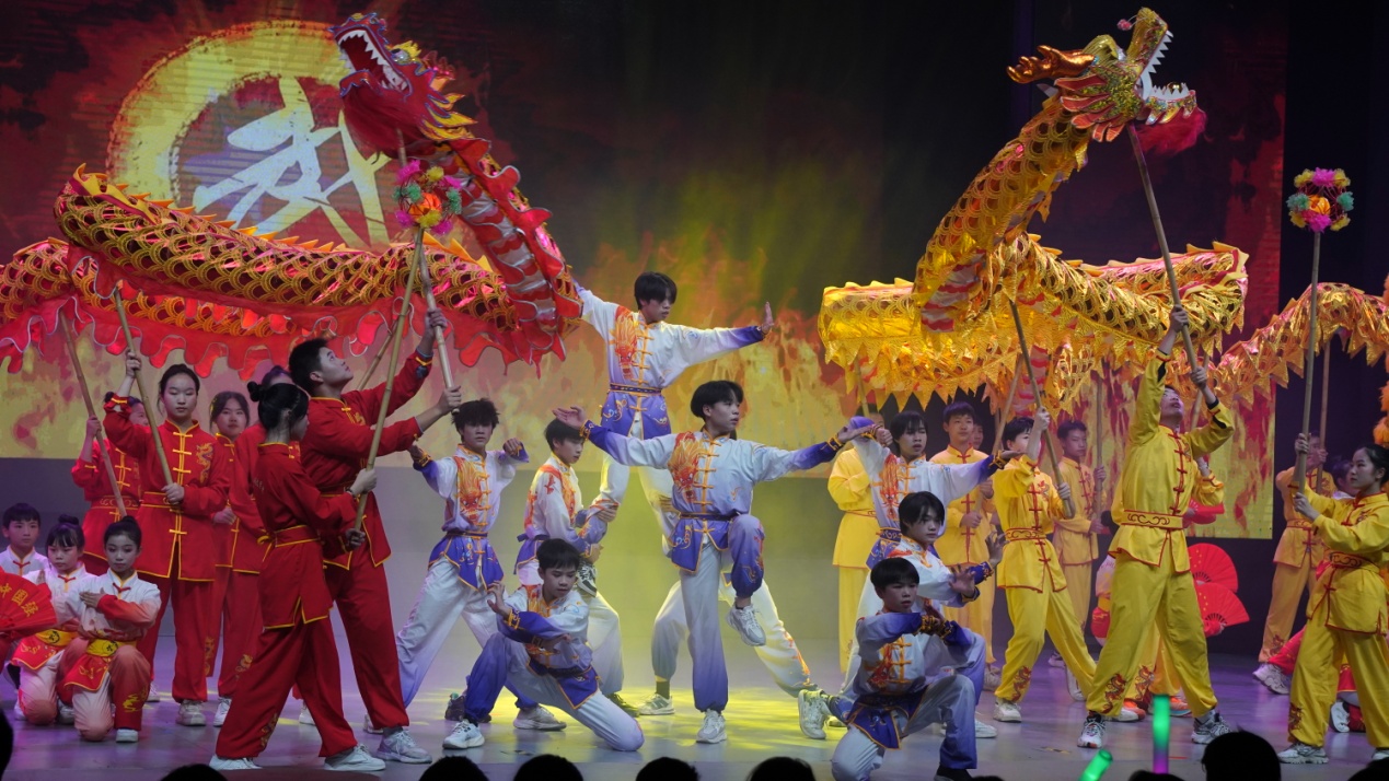 在师生们的热切期盼中,来自教师合唱团、幼儿园、小学部、初中部、高中部的节目轮番上演。这些节目主题鲜明、内容健康、富有时代气息和青春活力,具有较高的思想性、艺术性和观赏性。《领航》《乐动丝路》《多彩中华》《智取威虎山》《以青春之名》韵味醇厚悠长,表演细腻生动,展现出中华民族深厚的文化底蕴和新时代青年奋发向上的蓬勃朝气;相声《如此翻译》、小品《消失的周日》聚焦现实题材和社会现象,抱腹不断笑点足,诙谐的语言、娴熟的表演引发台下观众的共鸣和笑声阵阵;情景剧《是老师是学生》、影子剧《我们的船英》、英语剧《灰姑娘》温情真挚,令人动容;歌舞表演《勇气大爆发》展现出小朋友们的纯真稚嫩与可爱天真;古典舞《芳华待灼》《清庭云月》曲风婉转悠扬,触动人心,创造出舞与乐的共鸣;洋溢着青春力量的现代歌舞《你要跳舞吗》《LalaLand》《经典永流传》则是一次又一次将现场氛围推向高潮。传统经典和现代新创节目交替上演,为现场观众呈上了一台无与伦比的视听盛宴。