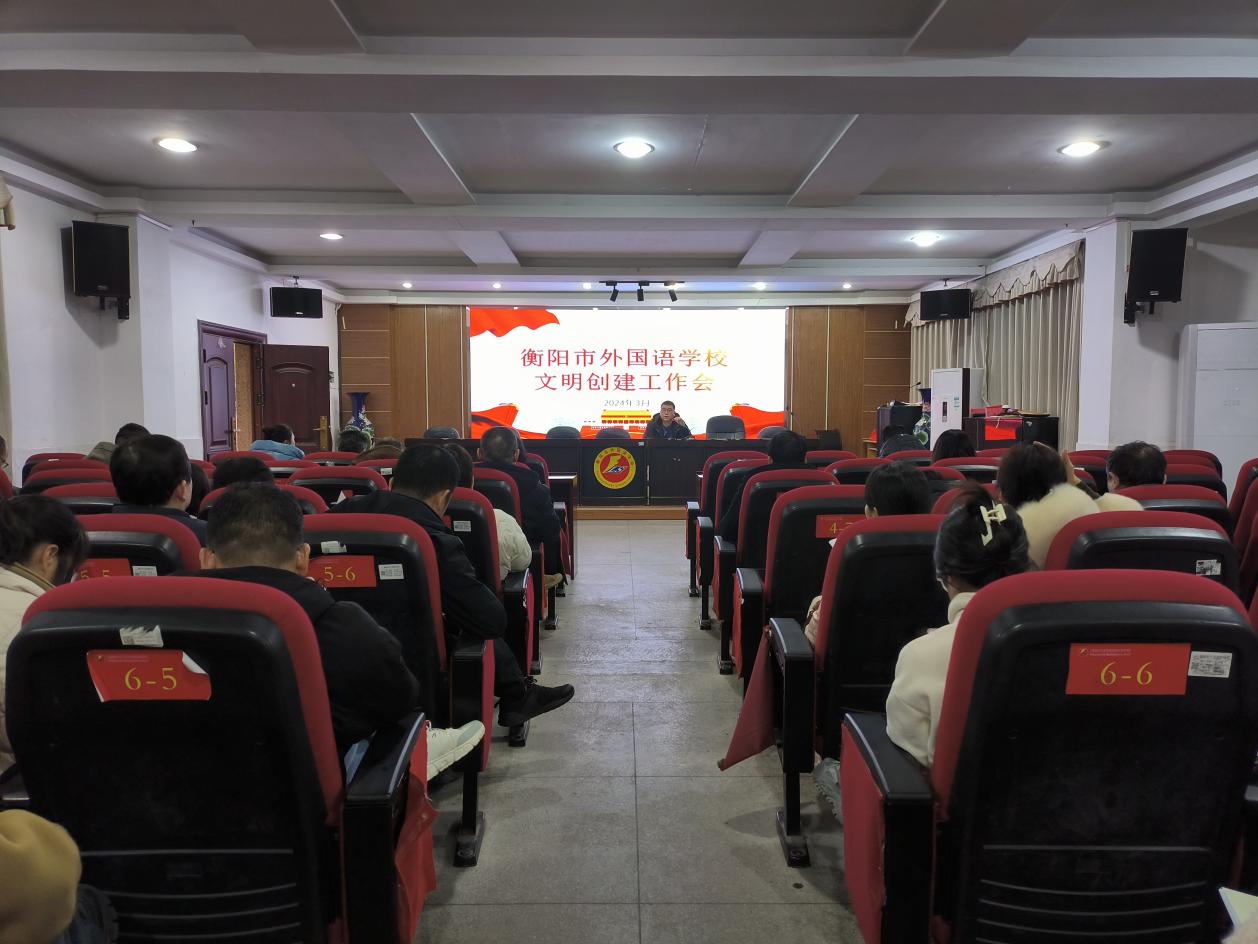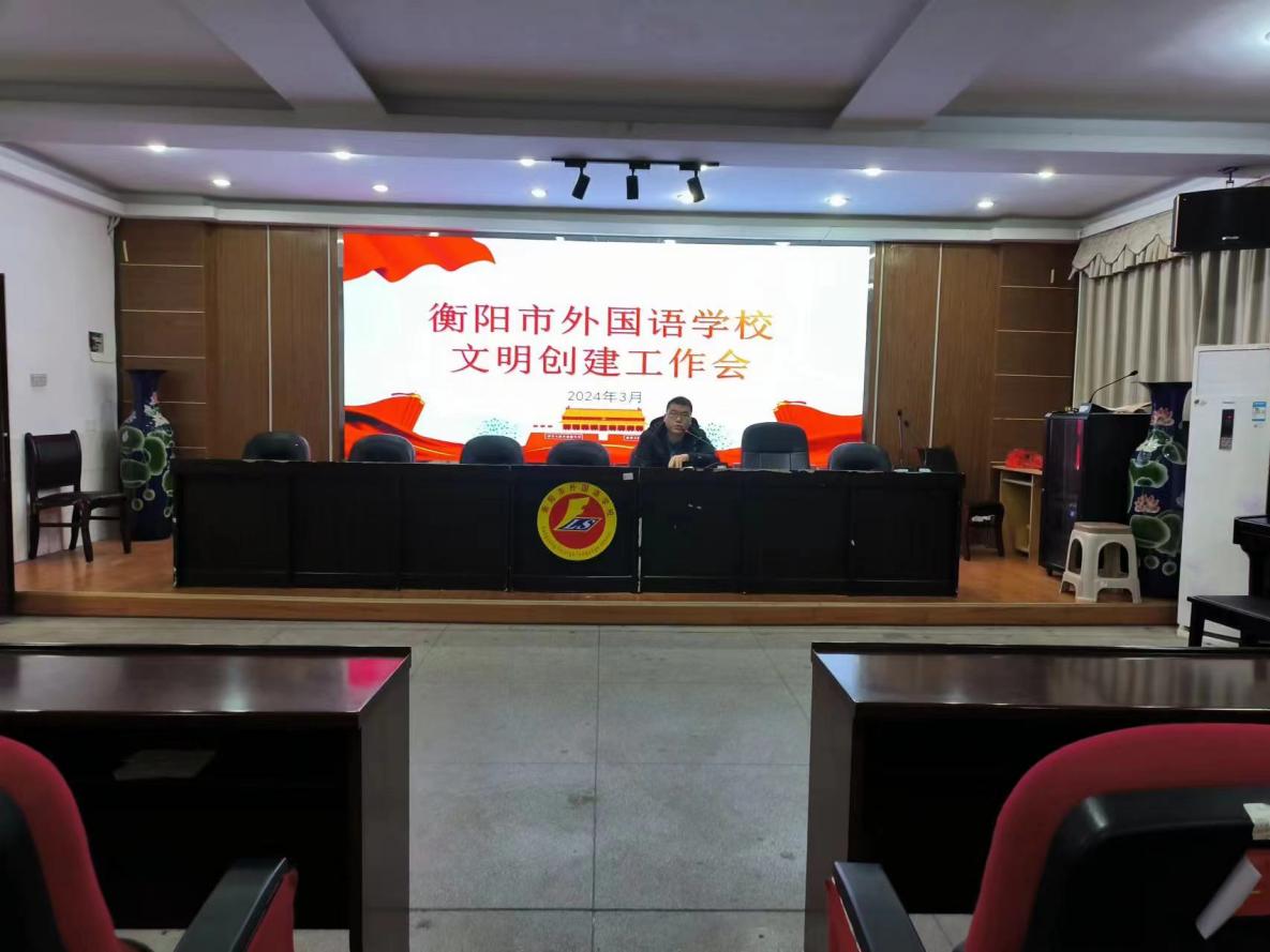 为贯彻落实市委、市政府有关会议精神。3月4日下午,衡阳市外国语学校召开了创建全国文明城市工作专题会,对文明创建工作进行再动员、再安排、再落实,奋力吹响创建全国文明城市工作"集结号"。会议由校长许润四主持,全体教职工参会。
