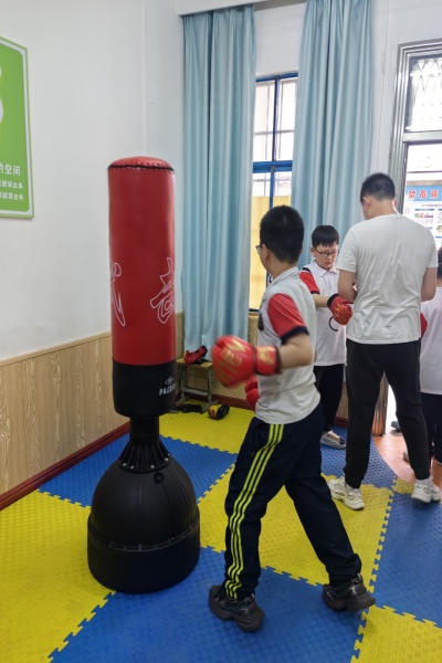 针对情绪消极,对人、对事都较为敏感,有强烈情绪体验的学生,陈干事组织他们玩人形拳击沙袋运动,让队员们尽情发泄,摆脱不良情绪,他还结合学生身边的实例分析了不良情绪引起的连锁反应,并和队员们探讨如何管理好自己的情绪,激发队员们积极、愉快的情绪反应,希望队员们开心每一天。本次心理健康活动的开展,促进队员们关注自我心理健康、呵护心灵成长,引导队员们正确面对成长中的心理困惑,减轻心理压力,帮助队员们以健康积极向上的心态共赴未来!