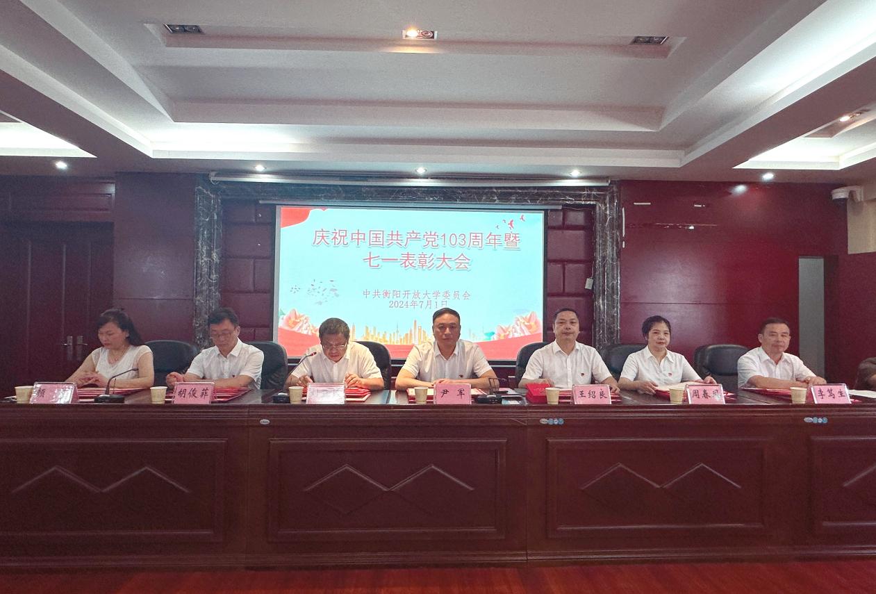 为隆重庆祝中国共产党成立103周年,7月1日上午,衡阳开放大学举行"七一"表彰大会,党委书记尹军以《以钢铁纪律铸就新时代师魂》为题上专题党课。