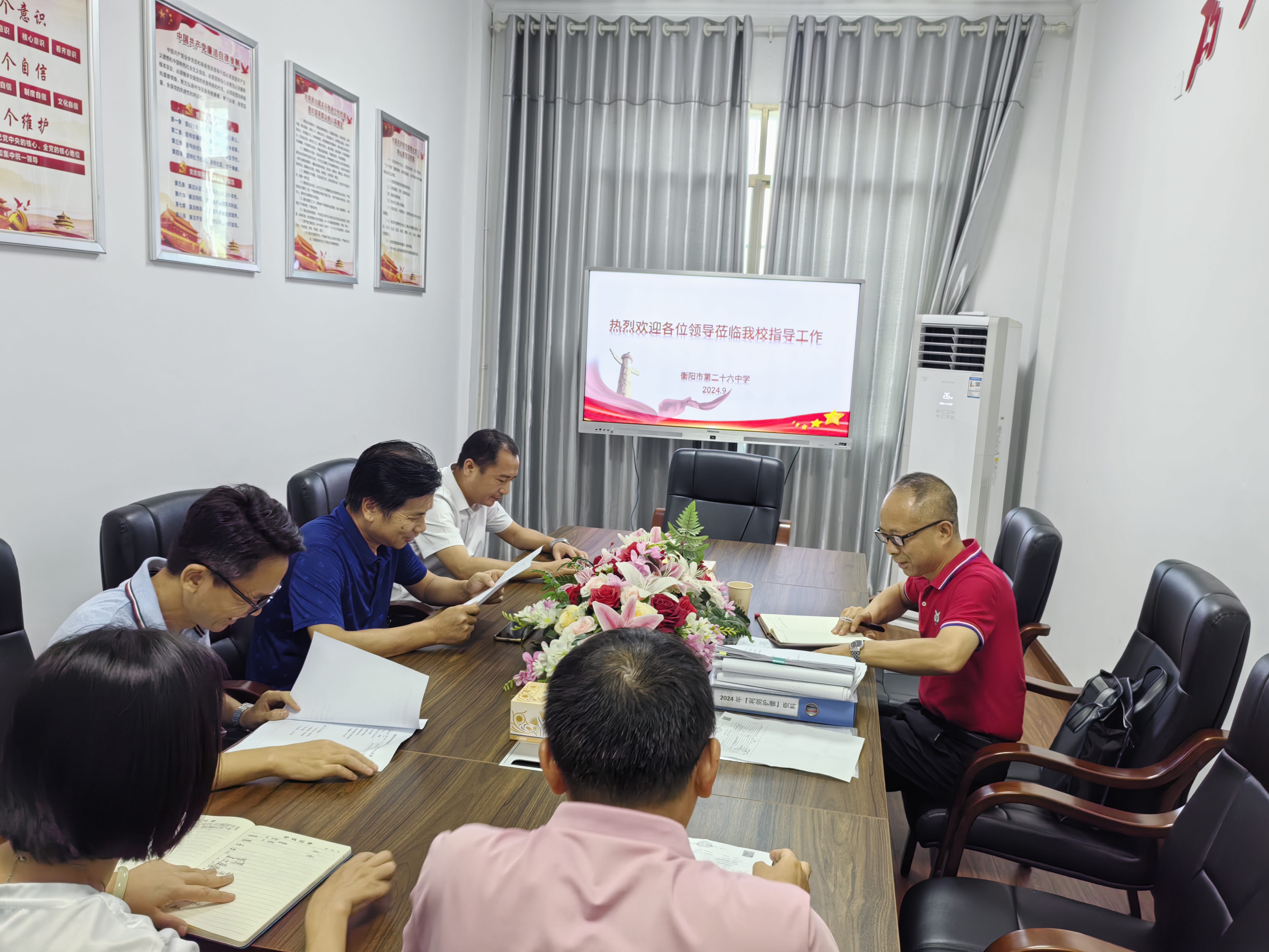 9月18日下午,衡阳市教育局责任督学李团结来到衡阳市第二十六中学,开展九月常规督导检查,并对"五全一常态"督查发现问题的整改落实情况进行"回头看"。学校党委书记李俊杰、校长谭永随同检查。