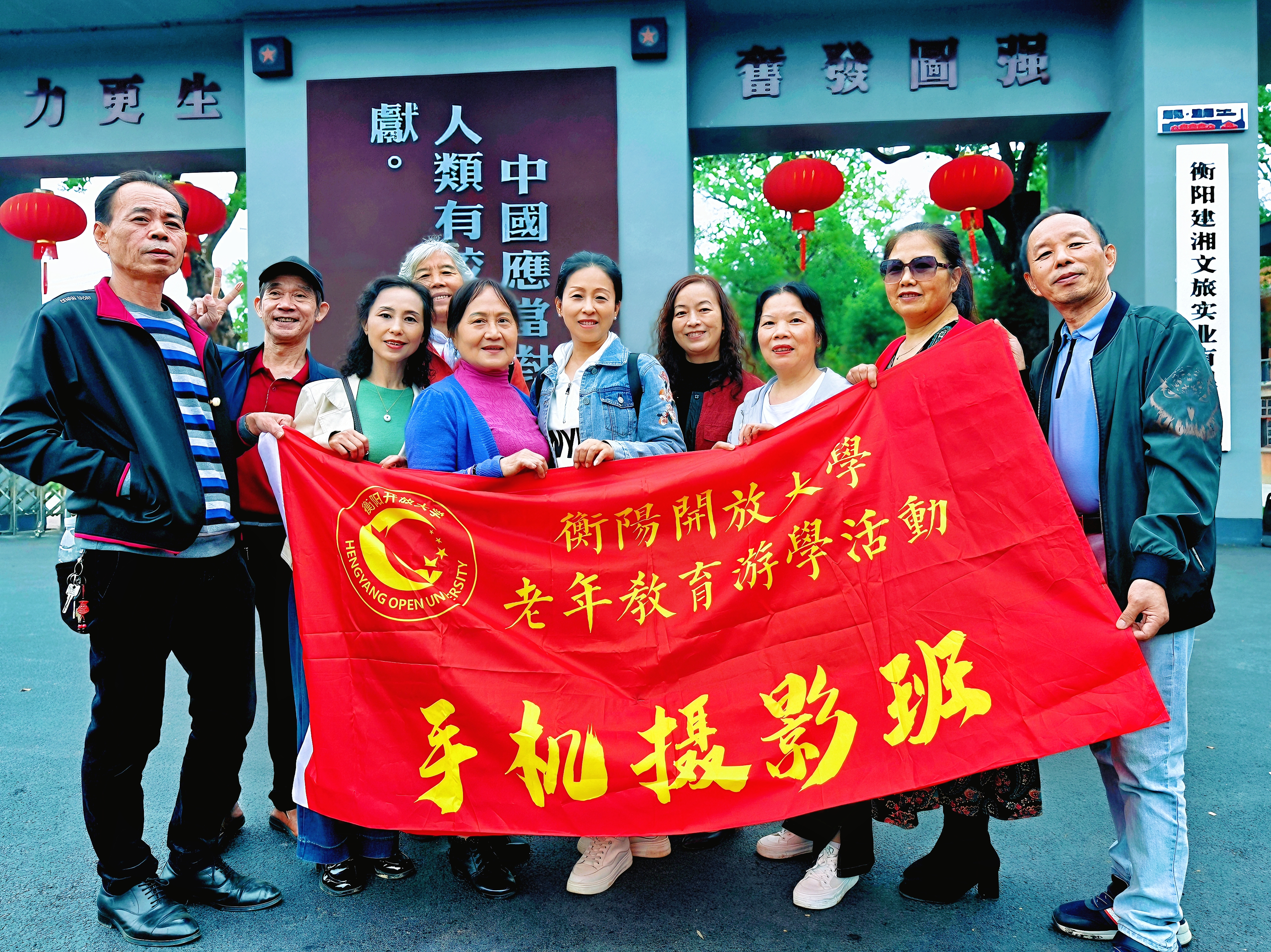 千年衡州城,青春东洲岛,衡阳东洲岛是与长沙橘子洲、岳阳君山岛齐名的湘江流域三大岛之一。上午,游学第一站抵达东洲岛,学员们在夫之楼、船山书院与衡阳籍明末清初思想家、哲学家王夫之来一次穿越时空的历史相会。在游历环岛喷泉、芒果快乐森林、苏州湾老街等新景点中,大家纷纷赞叹科技之美、人文之美、家乡之美。随后,各班学员在老师的指导下,现场学习交流,手机摄影班的学员们拿起手机,捕捉岛内的每一处美景;书画班的学员们则一起赏析岛上的书法碑刻作品;舞蹈班学员更是现场翩翩起舞,展现出老年人的特有的优雅与活力,引来岛上游客驻足观看。