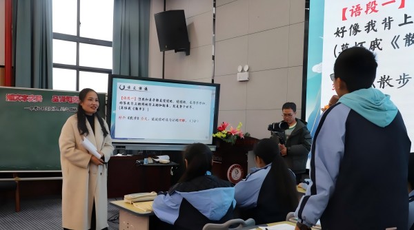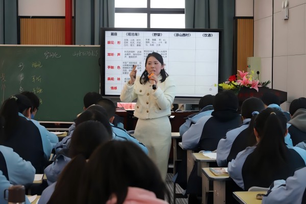 高新成章实验中学张梨老师,宛如一位诗意的引路人,带领学生们悠然漫步于山水田园诗歌的清幽小径。张老师用生动的讲解,指导学生学习如何"形、声、色、味'空间化'阅读诗歌,探寻中考山水田园诗歌深处的情感奥秘,仿佛让学生们穿越时空,与古代诗人并肩同行,共赏那山水之间的悠然意境,共品那田园之中的美妙情怀。