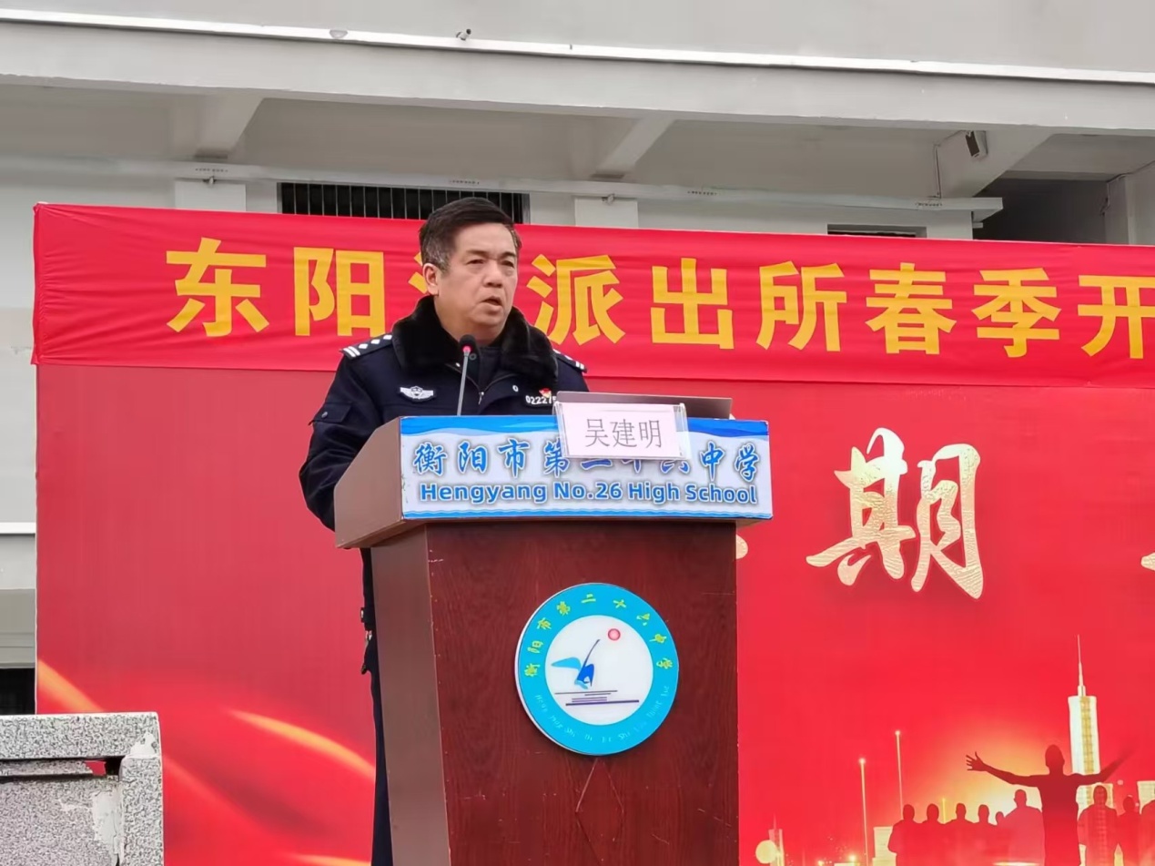 为增强师生安全意识,提升校园安全管理水平,筑牢校园安全防线,2月24日下午,衡阳市第二十六中学举行2025年春季安全教育讲座。学校法治副校长、衡阳市珠晖区东阳渡派出所所长吴建明给全校师生带来了一堂生动实用的"安全第一课"。